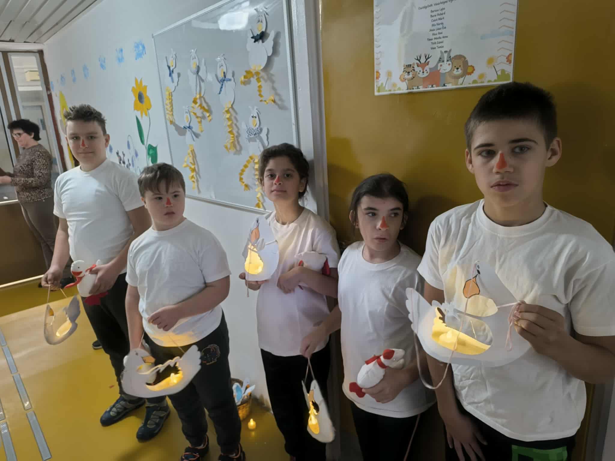 -A csoportok egymás neveit kihúzva, ajándékokat készítettek egymásnak. A lámpás felvonulás napjára a kihúzott csoport tanterme elé helyezték, kis mécsesekkel. A „jócselekedetek” ajándékait a csoportok a lámás felvonulás előtt bontották ki.