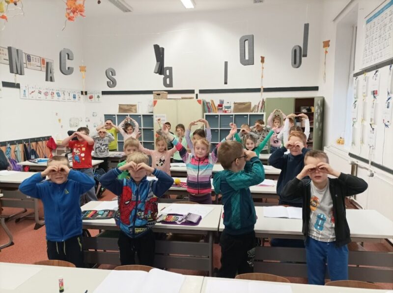 A TÉR hét is ebben a hónapban zajlott. A bemutató órákon nemcsak a kollégák, a szülők is részt vehettek. A nyitott kapuk hetének is a központi témája a társas kapcsolatok világa volt. Az elsősök órája során többféle módszert alkalmaztam – mozgásos, beszélgetős és drámajátékos elemeket –, hogy minél több csatornán keresztül élhessék meg a társas együttműködés örömét a kicsik és a felnőttek.