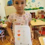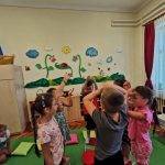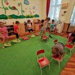 Az utolsó boldogságóra foglalkozást a lecsökkent létszám miatt, összevonva tartottuk a Kisvirág csoporttal. Könnyen összeszoktunk, hiszen a gyerekek jól ismerik egymást és a ballagásra is együtt készültünk. A fenntartható boldogság téma feldolgozását néhány közös relaxációs gyakorlat kipróbálásával kezdtük: A katicák bemutatták a kedvenc technikájukat a „Tüdőtakarítást”, ami a Kisvirágoknak is egyből megtetszett. Ezután a „Dagasztást” játszottuk el, a feszültségek levezetésére. A „Hintaszék” módszer segített az ellazulásban, a megpihenésben. Nyugodt körülmények között elsőként az ajánlott mesét: Az aranytulipánt, diafilmen megtekintették a gyerekek, méghozzá laptopról, a Virtuális Diamúzeum honlapján van erre lehetőség. Érdekesnek találták a képi világot, és csendben figyelték. Elővettük a mesetarisznyát, belepakoltuk a képzeletbeli kellékeket, a csoportszoba szőnyegére pedig kialakítottunk egy erdőt, akadályokkal. Mindenki a királyfi bőrébe bújt, s így indultunk útnak megkeresni a világ legszebb leányát. Az utunk során a javasolt mondókákkal, énekekkel színesítve haladtunk. Mindig kedvelt tevékenységük, ha akadálypályát építünk, és többször is végigmehetnek. Most is így tettünk, lassabb gyorsabb tempóban lehetett végigmenni, mindig új feladatokkal: ugrással, mászással, akadálykerüléssel. Egymás között megbeszélték, hogy ki vezesse a többieket, így mindig más ment elől. Útközben elraktuk a tarisznyánkba a pikkelyt, a holló tollat, az ősz hajszálat. Amikor el kellett bújni, akkor előhívtuk őket segítségül. A gyerekek elbújtak, és én mint királylány indultam megkeresésükre. Az izgalmasabb játék érdekében csukott szemmel elszámoltam húszig, addig elrejtőzhettek. Gyermeki módon várták, hogy megtaláljam őket, még ha látható helyen is voltak. Amikor újra játszottuk már a kislányok közül választottunk királylányt, és két segítőt is hozzá: egy hollót és egy halacskát. Ők éberen figyelhettek, amíg a királylány csukott szemmel számol, és szükség esetén súghattak a királylánynak. Szélesítettük a búvóhely keresési lehetőségeket is: nemcsak a csoportszobába, de a folyóson, a másik csoportba is elbújhattak – itt segítettek a jelen lévő óvó nénik.
