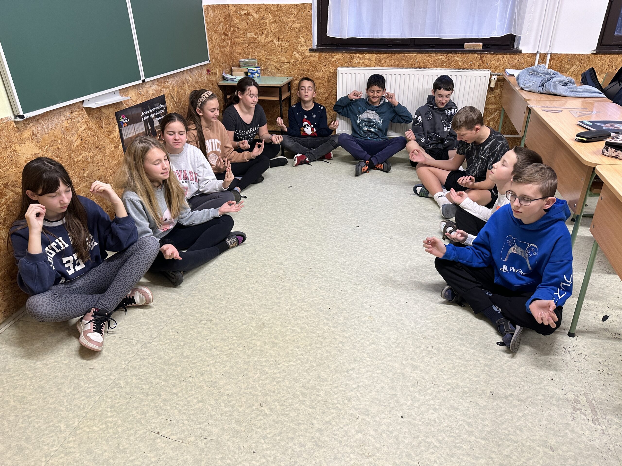 Meghallgattuk a társas kapcsolatok ápolását segítő meditációt a hatodik osztályos tanulókkal.