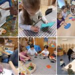 Kolléganőmmel egy egyhónapos projektet indítottunk „Kis kezek, nagy alkotások” címmel. A programsorozat célja az volt, hogy a gyermekek különböző manuális és kreatív tevékenységeken keresztül megtapasztalják a próbálkozás, az erőfeszítés és a siker örömét. Számos új és összetett feladat várt rájuk: Adél néni megismertette őket a varrás alapjaival, fonallal is dolgoztak, én pedig lehetőséget biztosítottam nagy felületen történő festésre, valamint a színekkel kísérleteztünk, ollóval vágtunk különböző anyagokat. Ezek a tevékenységek erősítették a kis Napraforgók türelmét, feladattudatát és problémamegoldó gondolkodását. A kezdeti bizonytalanságot fokozatosan felváltotta a sikerélmény, amely szemmel láthatóan növelte önbizalmukat.