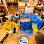 Egyik alkalommal vendégül hívtam egy nyugdíjas óvodapedagógust, aki szabadidejében fest. Személyes példáján keresztül megmutatta nekünk az alkotás örömét és a kitartás fontosságát. Erre a napra tudatosan választottam olyan irodalmi élményt, amely szorosan kapcsolódott havi témánkhoz: Bagyinszki Márta „A varázslatos szivárvány” című meséjét hallgattuk meg. A történet a nehézségekkel való szembenézésről és a belső erő felfedezéséről szólt. A mese feldolgozásaként arra ösztönöztem a gyermekeket, hogy fessék meg az általuk elképzelt szereplőket és tájakat, így az érzelmi tartalmak vizuális formában is megjelenhettek.