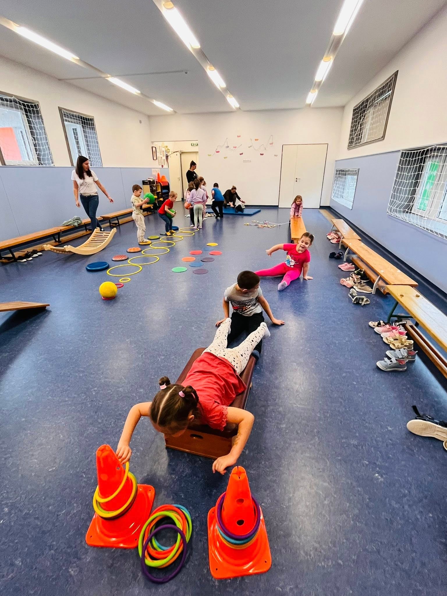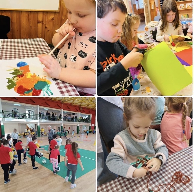 Grassrooots fesztiválon is jártunk a városi Sportcsarnokban, ahol különböző játékos feladatokkal várták az ovisokat. Az új környezet további kihívást jelentett számukra, ugyanakkor erősítette alkalmazkodóképességüket és bátorságukat. A közös mozgás élménye, a társak és a pedagógusok biztatása és az egymásnak nyújtott segítség mind hozzájárultak a közösségi megküzdési stratégiák fejlődéséhez.