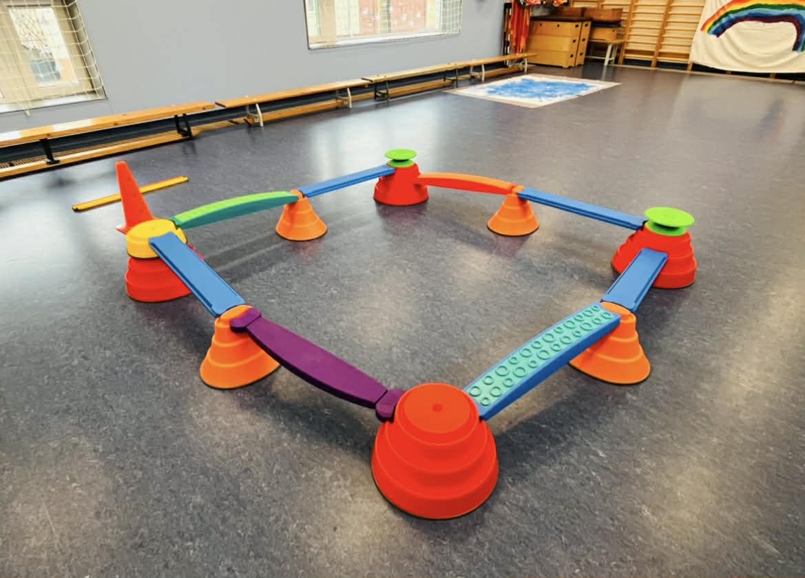 A mozgásos tevékenységek során is kiemelt figyelmet fordítottam a megküzdés élményére. A tornateremben akadálypályát állítottam össze, amelyhez a nemrég vásárolt fejlesztőeszközöket is felhasználtam. A változatos elemekből izgalmas pályát építettem, ahol a gyermekek egyensúlyozhattak, mászhattak, kúszhattak és ugrálhattak. A fizikai kihívások során megtapasztalhatták, hogy a kitartó próbálkozás meghozza eredményét, és minden sikeresen teljesített akadály tovább erősíti önbizalmukat.