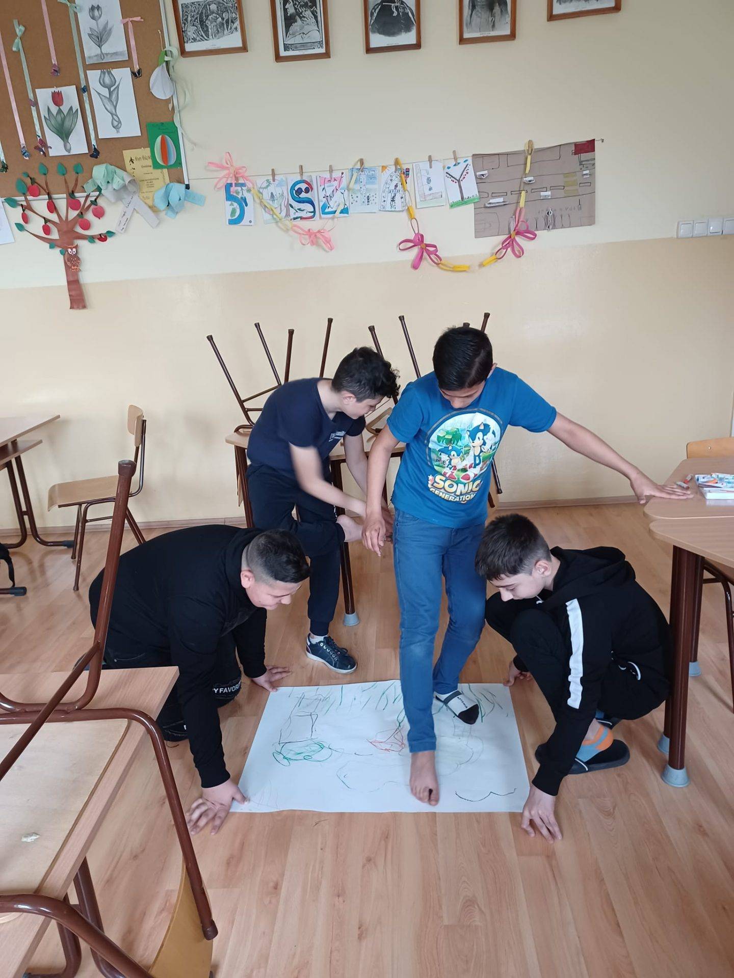 A megbocsátást színes alkotásként képzeltük el, de kicsit változtattunk rajta. Szavak helyett rajzot, kéz helyett lábbal rajzolt kép.
