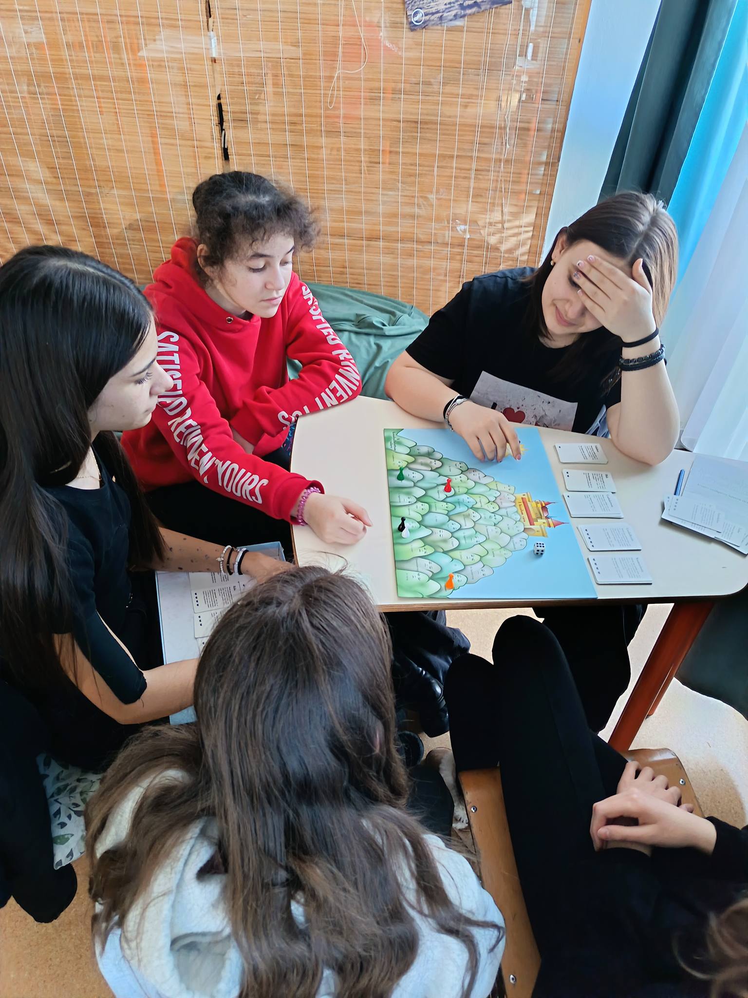 Érzelmi társassal hangolódtunk rá a mai órára , majd helyzetgyakorlatokkal próbáltuk megfejteni az emberi maszkolás mögött rejlő érzelmeket. Ezután tértünk rá a legfontosabb kérdésre: ha észrevettük és ha már értjük a másik érzelmeit, mit tehetünk. Hogyan tudunk örömet szerezni egy másik embernek? Furcsa dolog, de ezt is tanítani kell a gyerekeknek. Milyenek lesznek ennek a generációnak a társas kapcsolatai, házassága, ha mindezt nem tanulja meg. S a monitorok előtt bizony ez nem megy. Ismerkedünk a szeretetnyelvekkel , apró jócselekedetekkel. Még csak 12 évesek,de most alapozzuk a boldog , elégedett jövőt .