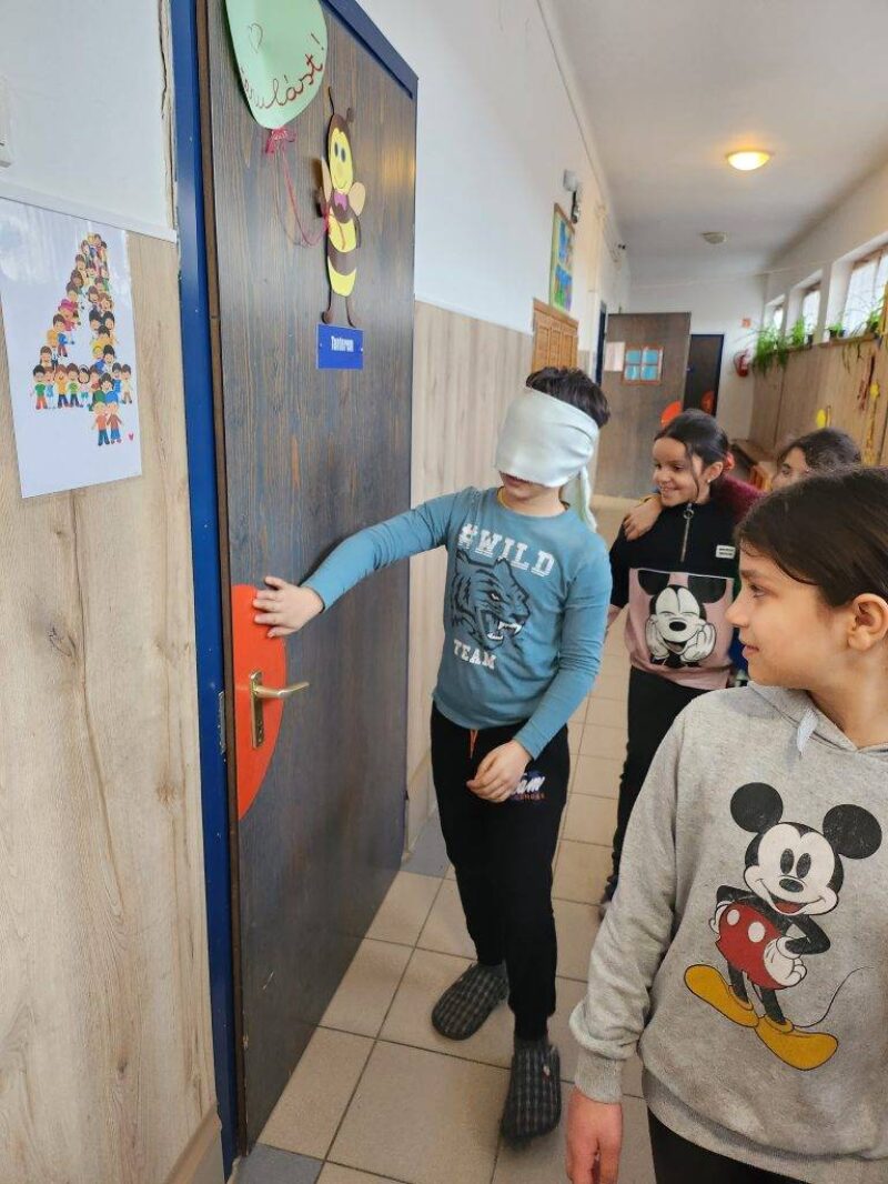 A Rimóci Szent István Általános Iskola 2. és 3. osztályos tanulóival ebben a hónapban olyan feladatot választottuk, amely mindennapi megszokott tevékenységieken keresztül ismert környezetben megtapasztalják, hogy milyen nehézségekkel kell megküzdenie egy látássérült embernek a mindennapokban.