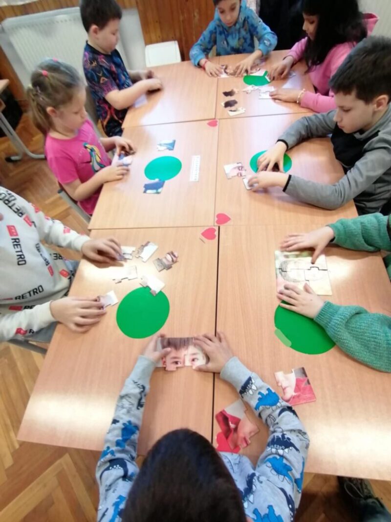 A februári foglalkozásunk célja az volt, hogy a gyerekek megismerjenek olyan megküzdési stratégiákat, melyekkel át tudnak lendülni egy-egy rossz érzésen, illetve le tudják küzdeni az eléjük kerülő nehézségeket. Relaxáltunk, majd meghallgattuk Bagdi Bella dalát, mely segített nekik ellazulni, megnyugodni, a témára hangolódni. Beszélgettünk arról, ki hogyan érzi magát, ezután Érzelmek puzzle-t raktunk ki. A játék során megfogalmazták, mit gondolnak egy-egy érzelemről, és elmondták, hol érzik a testükben. Összegyűjtöttük azokat a dolgokat, amelyek segíthetnek a szomorúság legyőzésében, hogy újra jó kedvünk legyen, jól érezzük magunkat. Érdeklődve hallgatták Bezzeg Andrea Aranykulcs című meséjét, majd képzeletben mindenki kinyitott valamit a saját aranykulcsával, és néhányan elmesélték, milyen próbatételeket kellett már kiállniuk. A foglalkozást relaxációval zártuk.