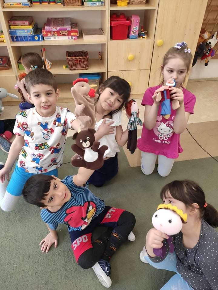 Alvásnál és másnap is – tevékenységi időben – elmeséltük az Aranykulcs c. mesét, amihez maguk készíthettek illusztrációt, amiből kiállítást csináltunk a folyosón.