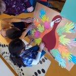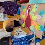 Az állatok világából a pávát választottuk azoknak az érzelmeknek és viselkedésmódoknak a megjelenítéséhez, amit mi a megküzdéseink során fontosnak találtunk. A színes tollakra írták a gyerekek milyen érzelmeket, stratégiákat jelent számukra a fogalom. Ezzel és nevük jelentésével felvértezve lett teljes a hónap témájának a feldolgozása.