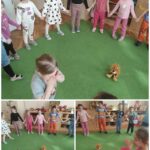 Javasoltam, menjünk át a tornaszobába, ahol jobban elférünk a további foglalkozást tekintve.A kilincsre egy fekete sálat helyeztem (korábban),melyet gyorsan észrevettek a gyerekek. Hamar megfejtettük, hogy a boszorkány hagyta itt, melyre titkos üzenetet írt. ”Felolvastam”, melyből kiderült, hogy akadályokat gördített elénk, amikkel meg kell küzdenünk, végig kell mennünk rajta.-„Mehetünk Katicák?Megcsináljuk?Megküzdünk?”-„Igen!!!”- harsogták a választ. Benyitottunk, s volt ám nagy meglepetés: át kellett bújnunk egy híd alatt (bordás falhoz kapcsolt csúszda), egy alagúton (asztal alatt) át vezetett az utunk, és a zsámolyokra lépve, mint egy gáton lépkedtünk tovább. A bokrok (bólyák) átugrását követően a hosszú egyenes pad gerendáján találtuk magunkat (kidőlt fa, amin egyensúlyozva haladtunk). A folyami köveken óvatosan lépkedve elértük a folyót, ahol úsznunk(rövid pad)kellett. Megcsináltuk, bár nagyon hideg volt a víz,brrr….És azt vettük észre,hogy hernyókká változtunk , (csúsztunk) a következő hosszú padon. -„Jajj,csak nehogy úgy maradjunk!” -mondta aggódva az egyik kislány. De nem, mert amint rátértünk a zöld kanyargós hídra, (hosszú lépegető) azonnal visszaváltoztunk gyerekekké. -”Hű,ezt megcsináltuk,kiálltuk a próbát!Nagyon büszkék lehetünk magunkra!Nagyobb lett az önbizalmunk,bátran nekivágtunk az akadályok teljesítésének!” -„Bár bevallom, kissé féltem,de legyőztem a félelmemet.” -„Ó! Van itt még valami!Csak akkor mehettek ki innen- írta a boszorkány- ha megmásszátok ezt a magas hegyet,és bizonyítékul kitűzitek a zászlót! (torna kendő).” -„Mindenki tud hegyet mászni?”-„Igen!Megpróbáljuk!” Azzal már indultak is a kis Katicák fel a bordás falra, a csúszdáján keresztül mászva. Nagyon ügyesen biztatták egymást,kinek könnyebben,kinek nehezebben ment,de a zászló mindenkié ott lobogott. -„Sikerült!!”- kiáltottunk fel. Büszkén mehettünk vissza, igazi hősként a csoportszobánkba, ahol kicsit pihentünk. Jutalmul meghallgathatták Bagdi Bella :A bátorság erősség dalát.Néhány gondolatban beszéltünk még a bátorságról, hősiességről, annak kapcsán, ami történt velük a tornaszobában.Kincső elmesélte, hogy ő már mászott igaziból hegyet, és eléggé félelmetes volt, de egy másik alkalommal már ügyesebbnek, bátrabbnak érezte magát. Néhányan megosztották még a félelmeiket,de javasoltam,hogy legyen mindenkinek otthon egy kis kavicsa,amit a markába tehet,megszorongatva erőt ad majd nekik.Elfogadták az ötletem.Még egy színes,vidám „félelem evő” zsákot is hoztam elő,amibe virtuálisan beledobták a saját félelmeiket .Tetszett a gyerekeknek, mindenki igyekezett kigondolni valamit. Már éppen össze akartuk csukni a zsákot,mikor egy oroszlán hangja hallaccódott ki belőle. Kiderült, ő azért érkezett a csoportunkba(oroszlán báb),hogy bármikor érez valaki félelmet valamiért,odamehet majd hozzá,és megölelheti, mivel itt marad nálunk. Gyorsan nevet is kapott új kis barátunk, Szimba névre hallgat.Végül kértem a gyerekeket, ha bármikor segítség kell számukra,vagy egy jó tanács, forduljanak hozzánk bizalommal, mert tudjuk milyen rossz,ha valami miatt idegeskedünk,félünk…Sokkal jobb ,ha magabiztosak vagyunk.Végezetül kértem,mutassák meg ,hogy néznek ki az ilyen kisgyerekek(egyenes testtartás,mosolygás).A foglalkozás zárásaként meghallgattuk Bagdi Bella Ellazulni jaj,de jó! című zenéjét,egy kis relaxáció kíséretében.