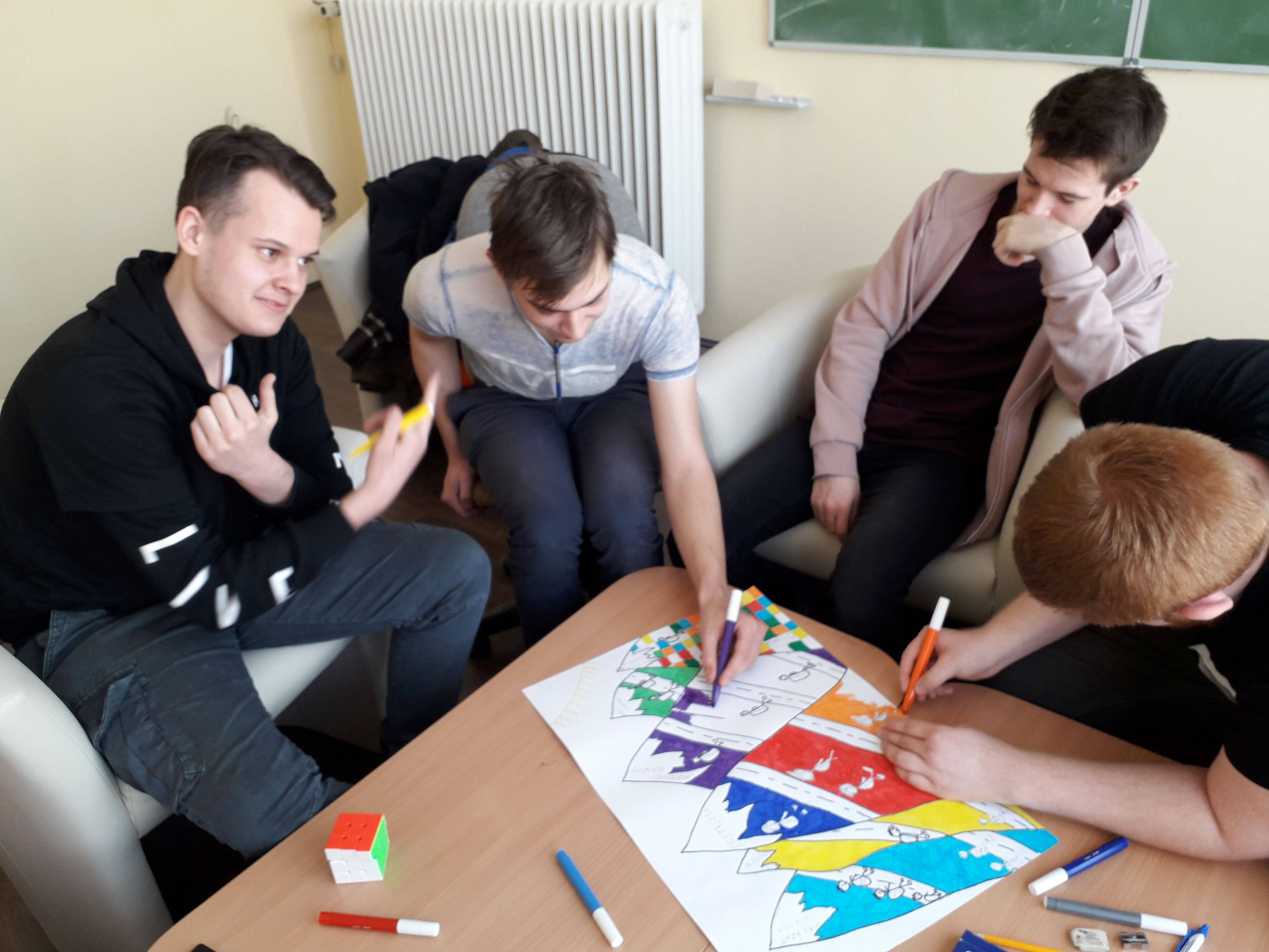 Aktuálisnak bizonyult ez a téma is a csoport körében, hiszen több, már legyőzött és még előttük álló akadály is eszükbe jutott a diákoknak, miközben a „Megküzdés-hegység”-et készítették. Az előző hónapban elkészített céltáblán megjelenített célkitűzések közül is volt olyan, ami most is előkerült, mint előttük álló akadály. Ilyen volt például az érettségi, melynek elérése cél is, ugyanakkor jelenleg még egy teljesítendő feladatként, egy megmászásra váró hegyként áll előttük, aminek a megmászásán dolgoznak. Gondolkozott azon is a csoport, hogy ehhez milyen megküzdési módokat, stratégiákat tudnak használni. Ezeket összegyűjtötték, és bepakolták a hátizsákjukba, hogy náluk legyen hegymászás közben.