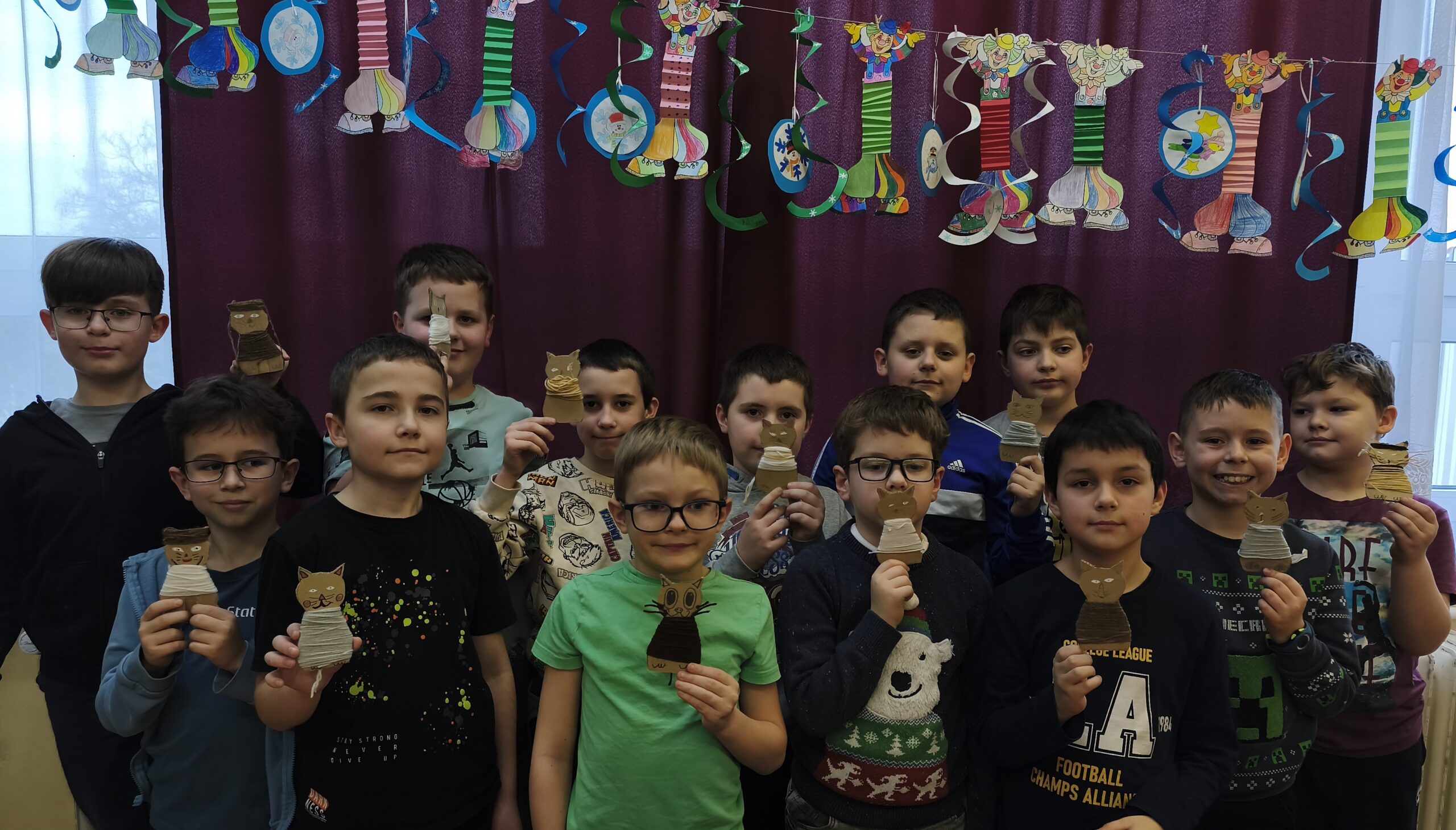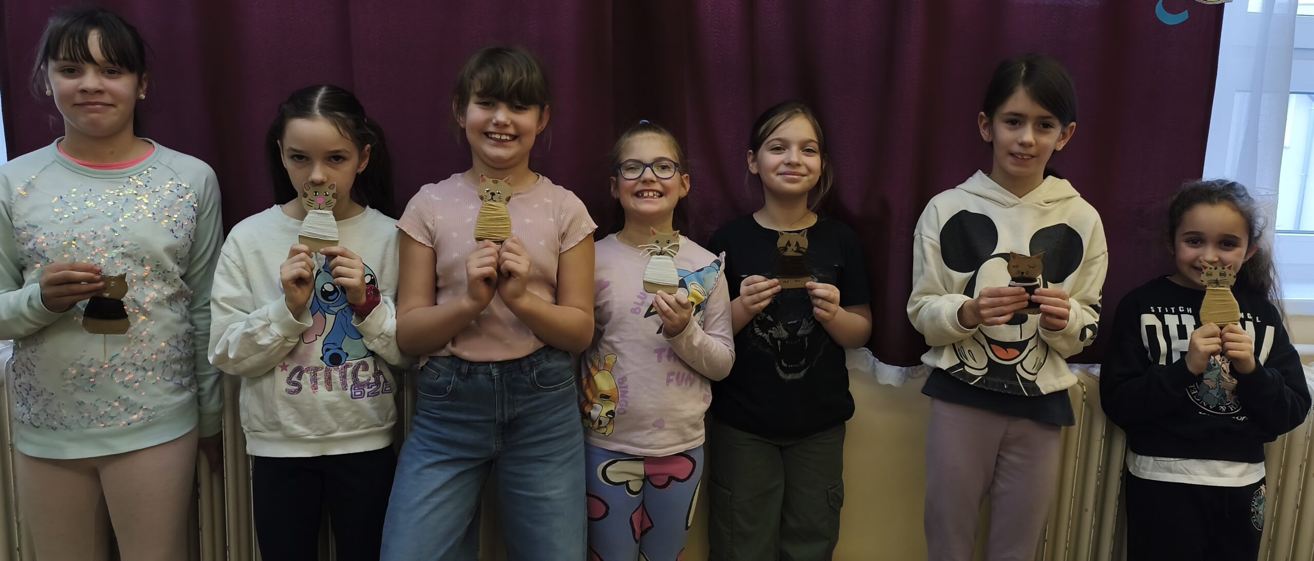 Kézműves foglalkozáson fonal és kartonlap felhasználásával cicákat készítettünk, a macskák napját ünnepelve. A macskák sokszínűségéről, tulajdonságairól beszélgettünk.