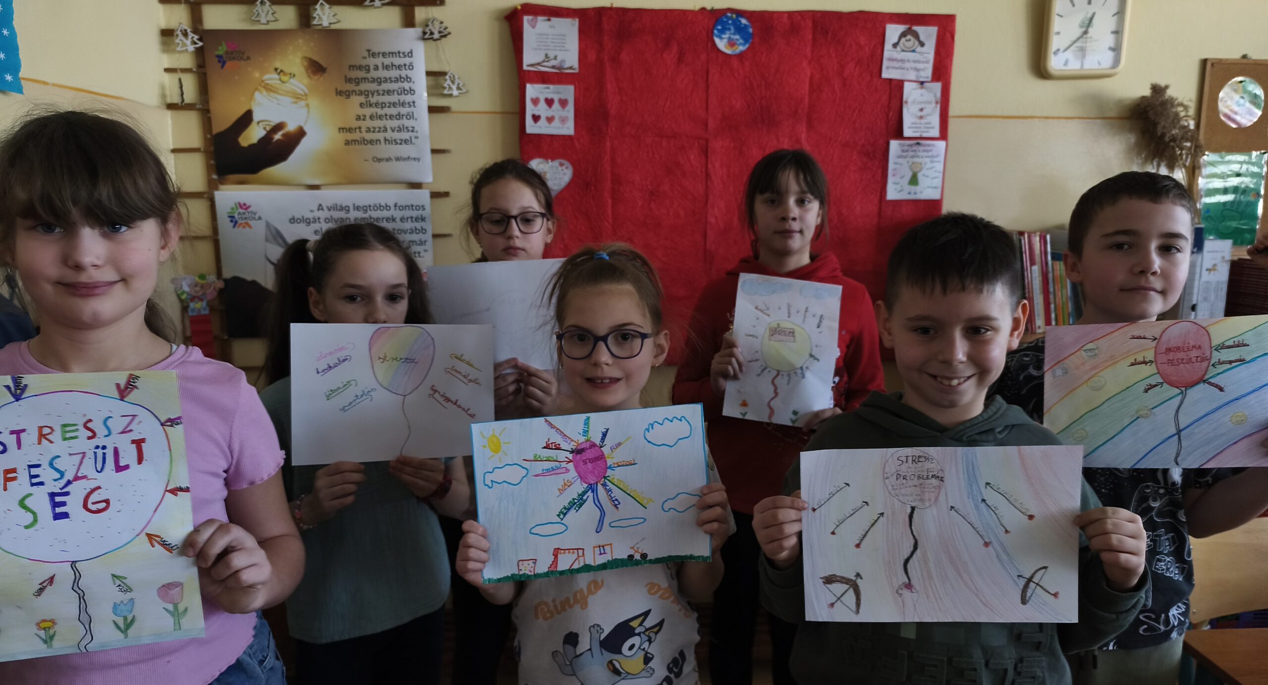 Kitűzött céljaink, álmaink megismerése után az eléréshez vezető úton felmerülhetnek problémák, feszültséggel telnek a várakozás pillanatai, stresszhelyzet alakulhat ki a megoldandó feladatok elvégzésében. Minderre kerestük a gyerekekkel a válaszokat. Beszélgetőkörben irányított kérdésekkel indítottuk a témát, melyhez könnyen csatlakoztak a gyerekek. Mi a stressz? Mit érzünk ilyenkor? Mi látszik rajtunk? Mit teszünk ilyenkor?