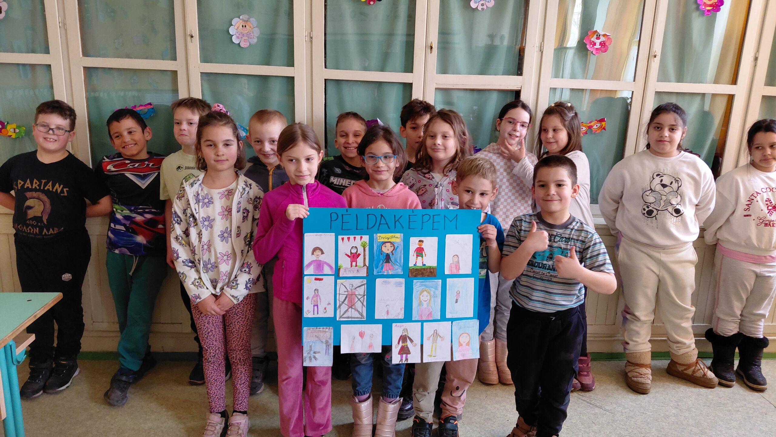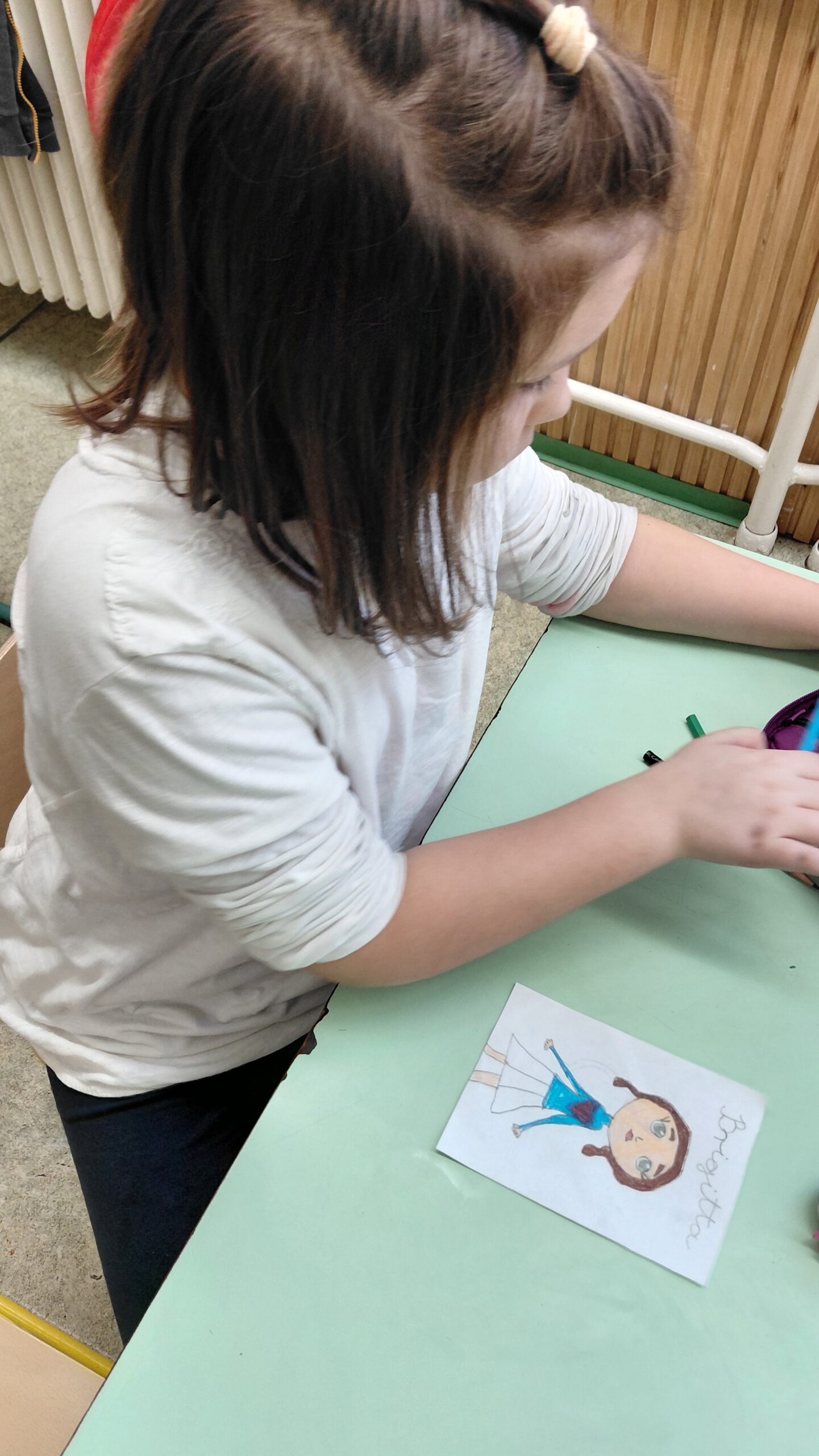 Végül lerajzolták a gyerekek a példaképeiket, akiktől megküzdési módokat is tanulhatnak.Ezekből a rajzokból az óra végén tablót készítettünk.