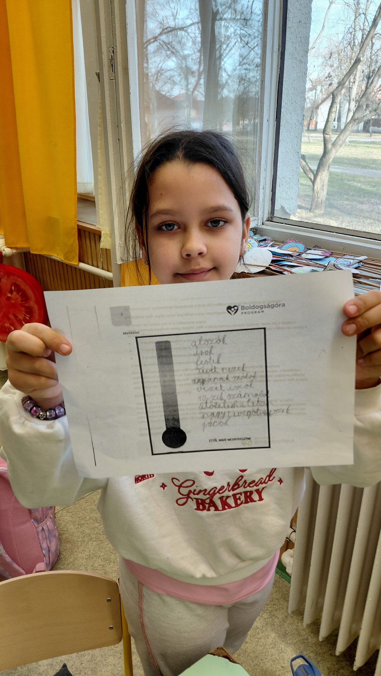 Egy mese olvasásával kezdtük a foglalkozást,melynek címe: Ki tudja,ez jószerencse vagy balszerencse? Beszélgettünk a mese tanulságáról,illetve a problémáink megoldásáról,a feszültség levezetésének módjairól.
