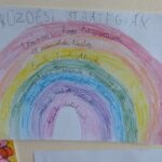 Zenehallgatás után (Bagdi Bella: Ellazulni jaj, de jó!) visszaemlékeztünk a januári fogadalmakra. Megbeszéltük, hogy milyen módszereket alkalmazhatunk megvalósításukra. Az ötletbörze után mindenki megalkotta saját szivárványát, melybe feljegyezte azokat a módszereket, melyeket használni fog a nehézségek leküzdésére. A megküzdés szivárványát hazaviszik , hogy mindig szemelőtt legyen a segítség.