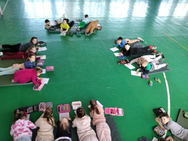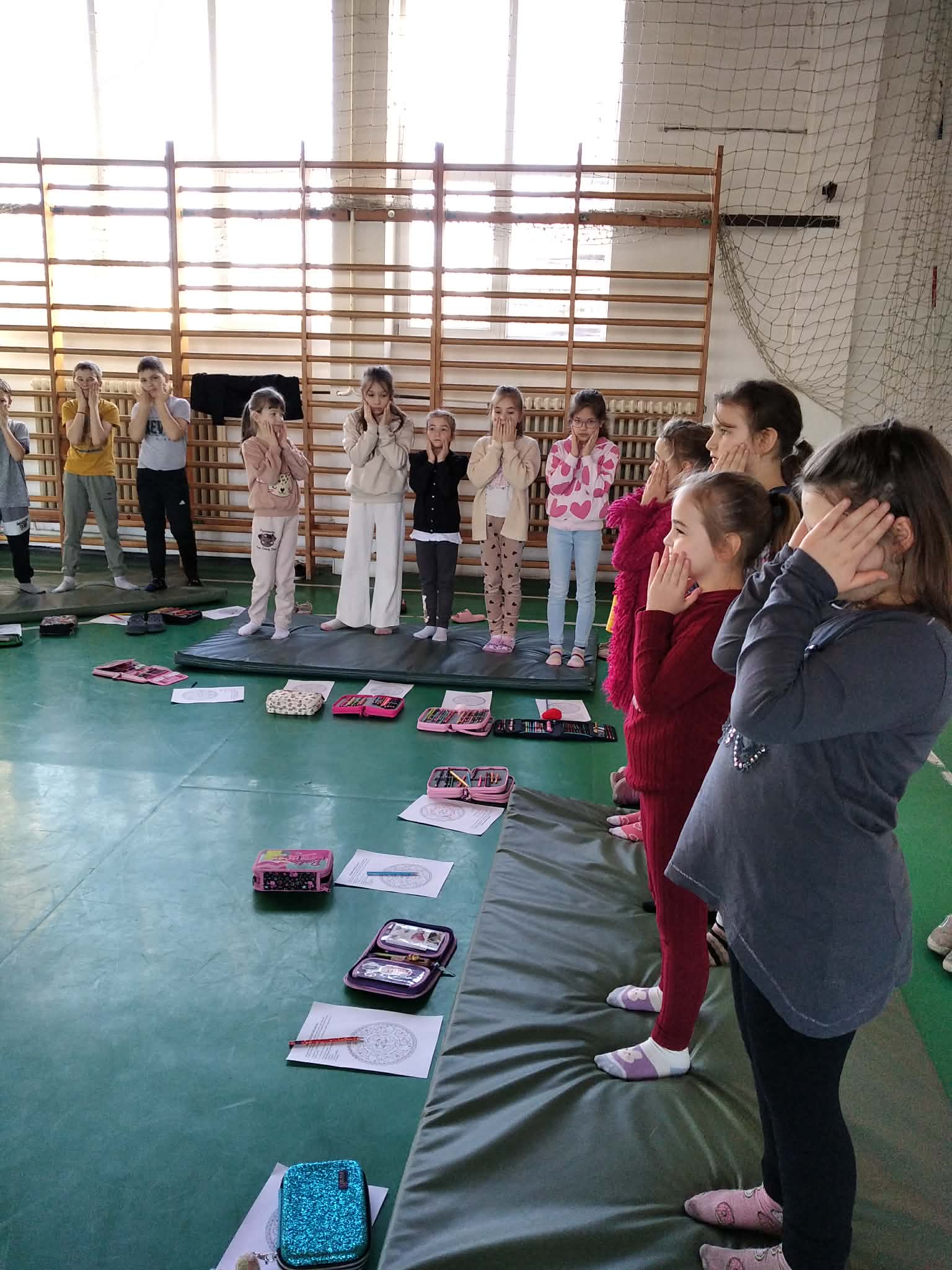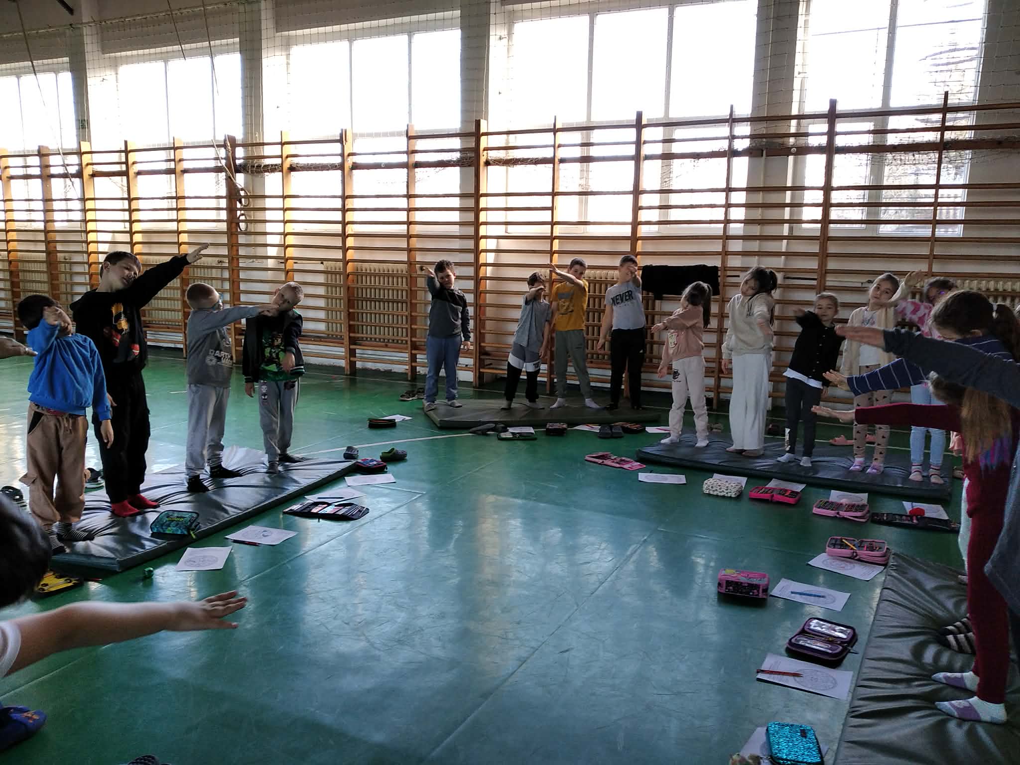 Ezen az órán a második osztályos tanulók kikapcsolhatták a gondolataikat, a kisebb-nagyobb problémáktól erre az időre elbúcsúzhattak. Most a tornateremben, tornaszőnyegeket használva végezték a feladatokat.