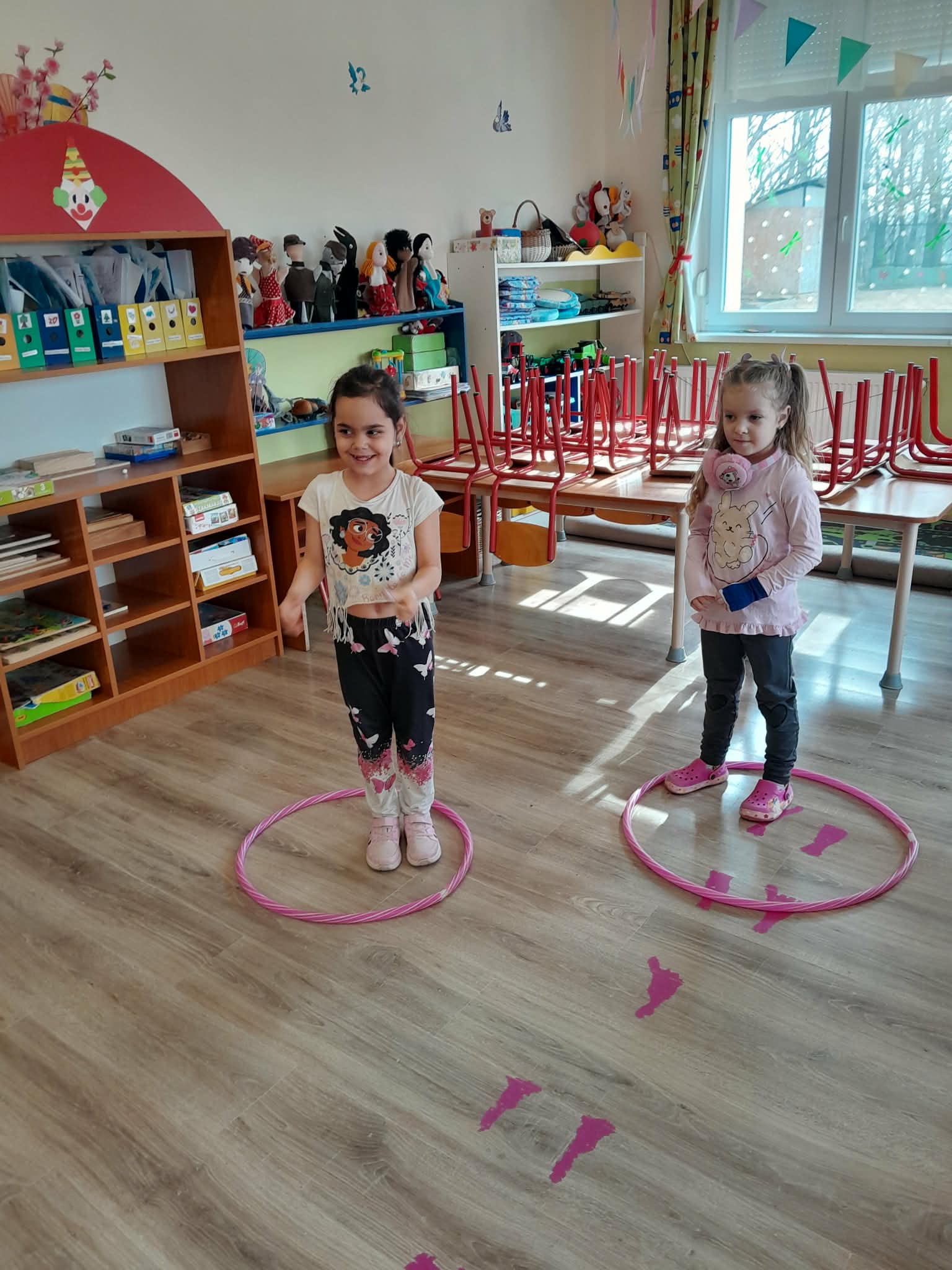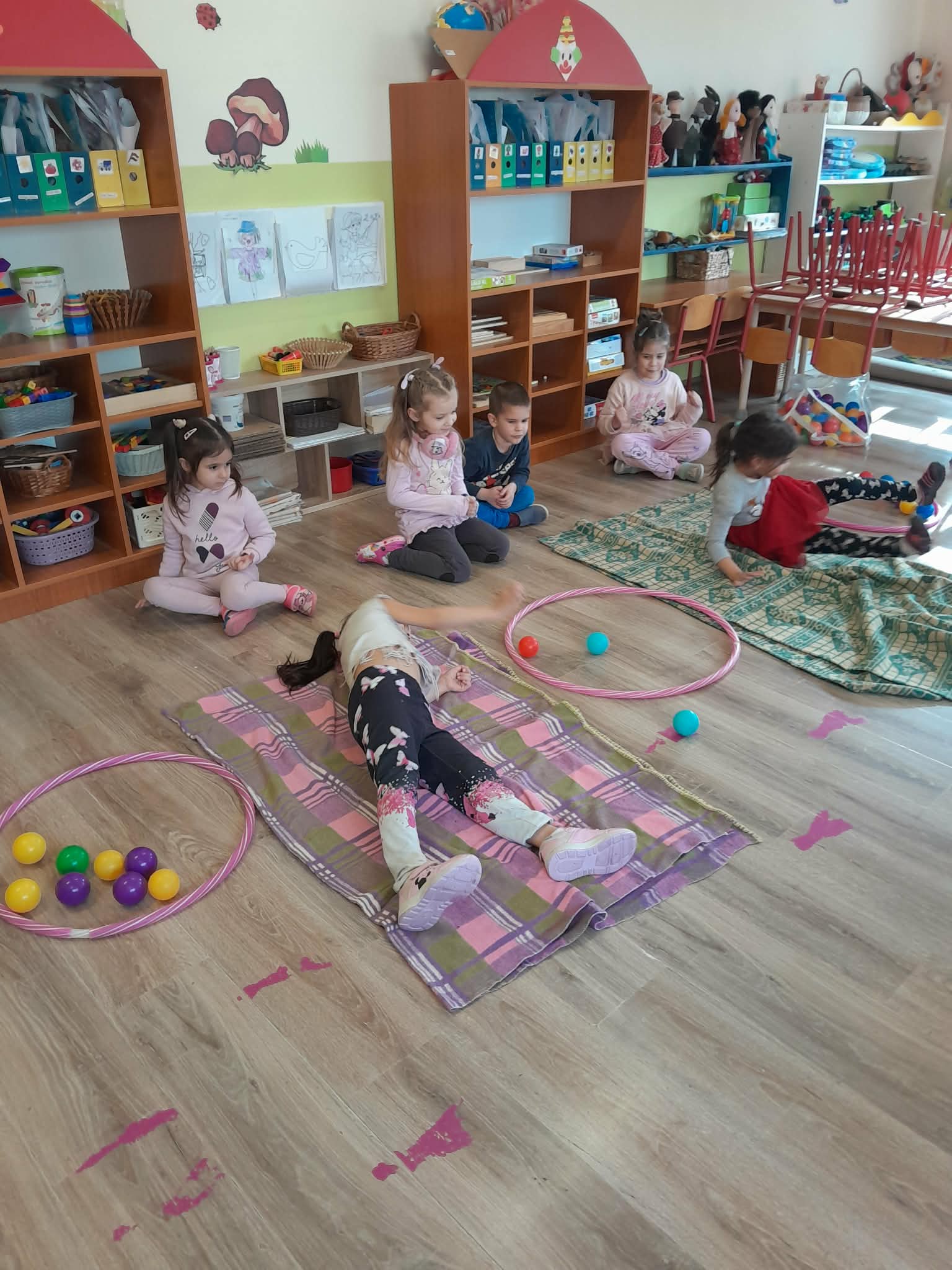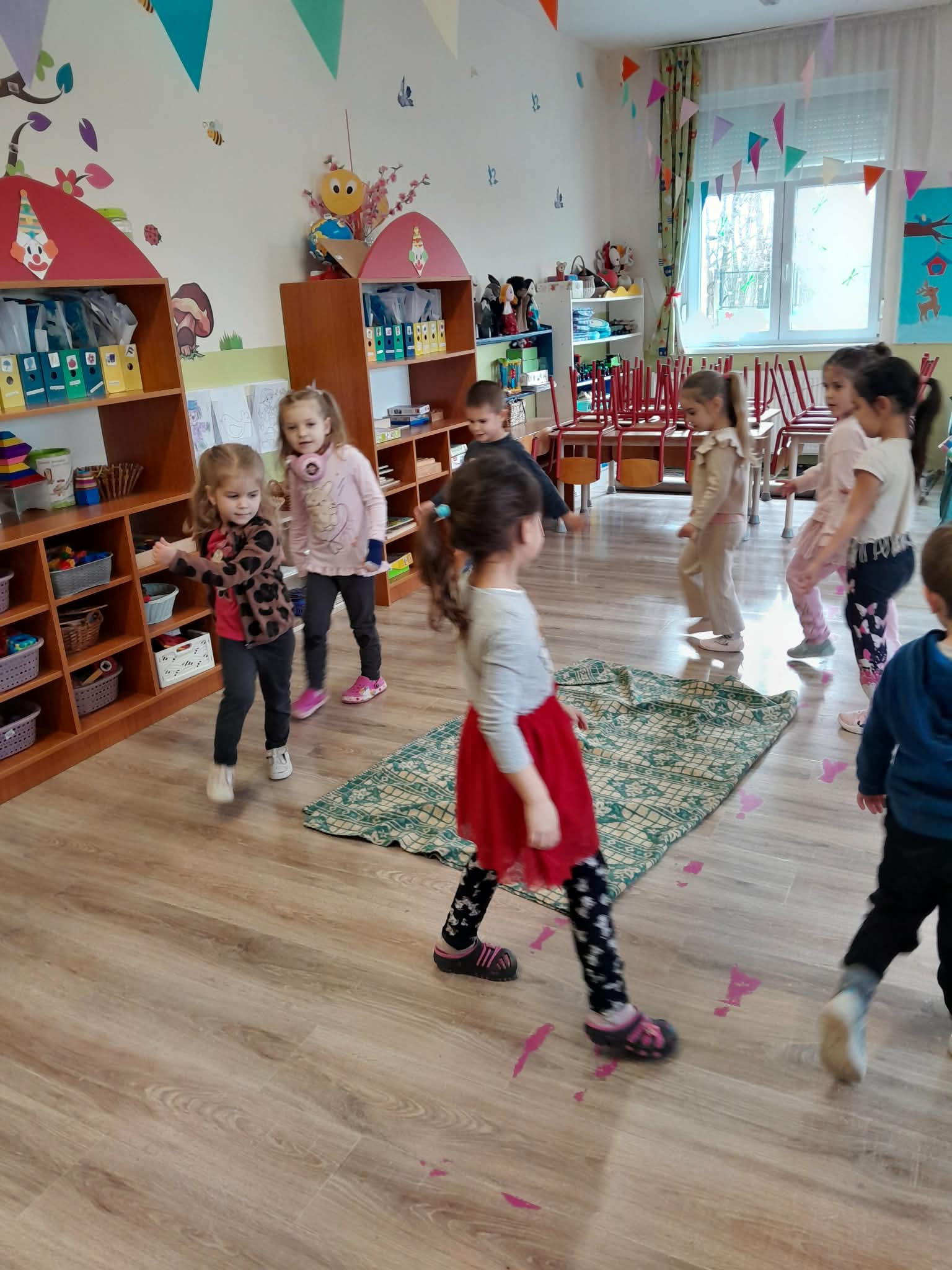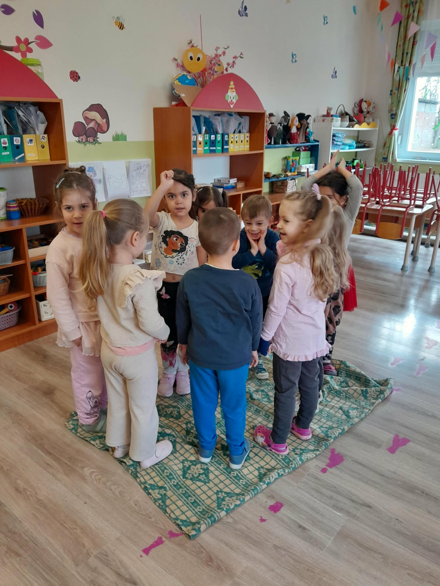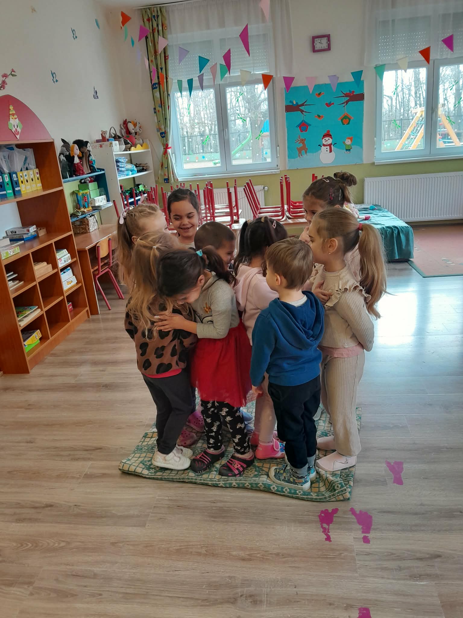 Február hónap a farsangi időszak volt óvodánkban, ezért ez a téma jól alkalmazkodott az óvodái élet mindennapjaihoz. A gyerekeknek több alkalommal is versenyjátékokat szerveztem, ahol megküzdhettek egymással és versenghettek a győzelemért. A várfoglaló játék során minden gyereknek jutott egy vár(karika), amelyek folyamatosan fogytak. A végén az lett a győztes, aki utolsó várat elfoglalta. A gyerekek zenére körbe szaladtak, ha megállt a zene, várat kellett foglalni, akinek nem jutott ki esett a játékból. A következő játék a szigetfoglaló is hasonló képen működött. A sziget egy pléd volt, amire kezdetben minden gyerek felfért, a pléd összehajtásával kisebb lett a sziget, és a gyerekek nem fértek fel rá, aki leesett ki esett a játékból. A végén csak egy maradt az lett a győztes. A labdaszedegető játék során azonos mennyiségű labdát (10db) kellett, átrakni egyik karikából a másikba. A versengést kezdetben egy-egy gyerek játszotta, majd két-két gyerek adta egymásnak a labdákat. A győztes az lett, aki hamarabb átrakta a labdát egyik karikából a másikba. A játékok jól fejlesztették a kitartásukat, a türelmüket, a versenyszellemet, a kudarctűrő képességüket, a szabálytudatot.