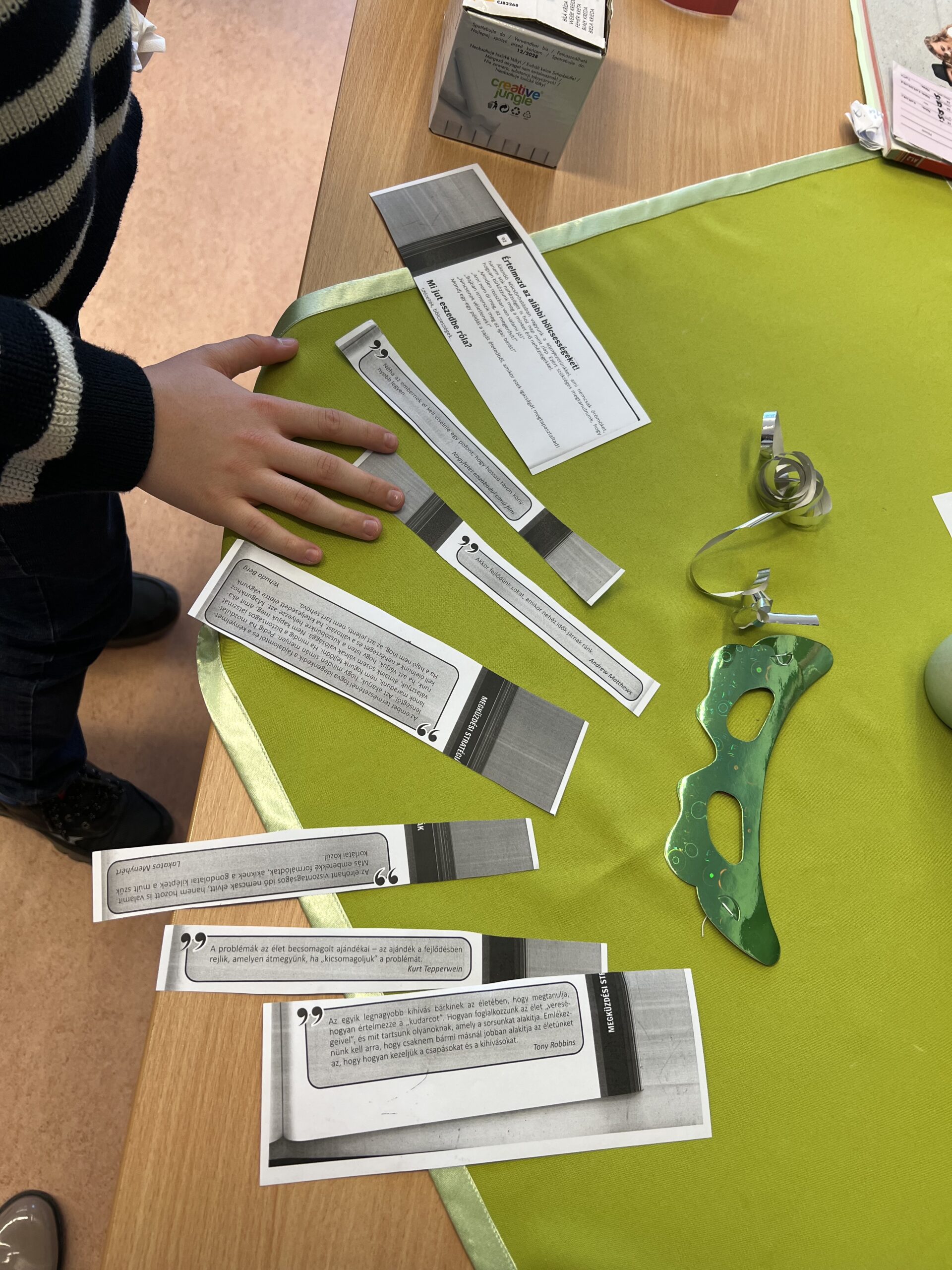 Idézeteket vágtam szét a kézikönyv 169. oldaláról, amelyből mindenki húzott egyet, majd közösen értelmeztük azokat. (1. sz. melléklet)