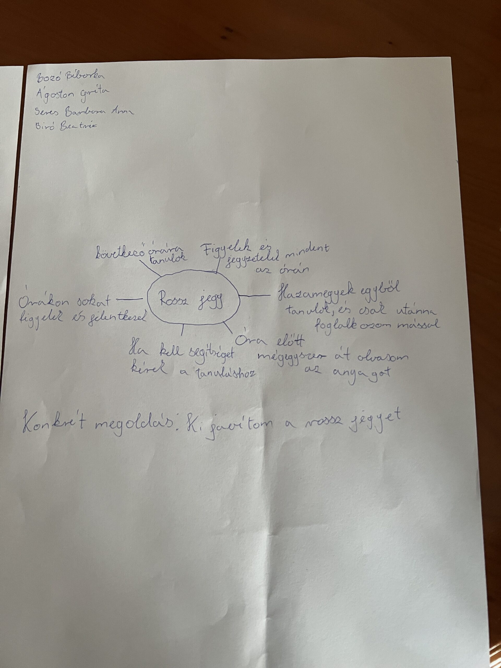Páros munka: Egy írólapot felosztottunk 12 részre és csoportokban olyan örömtevékenységeket írtak rá, melyeket szívesen végeznek. Következő órán beszéltünk róla, kinek melyik működik legjobban ezek közül stresszhelyzetek oldására.