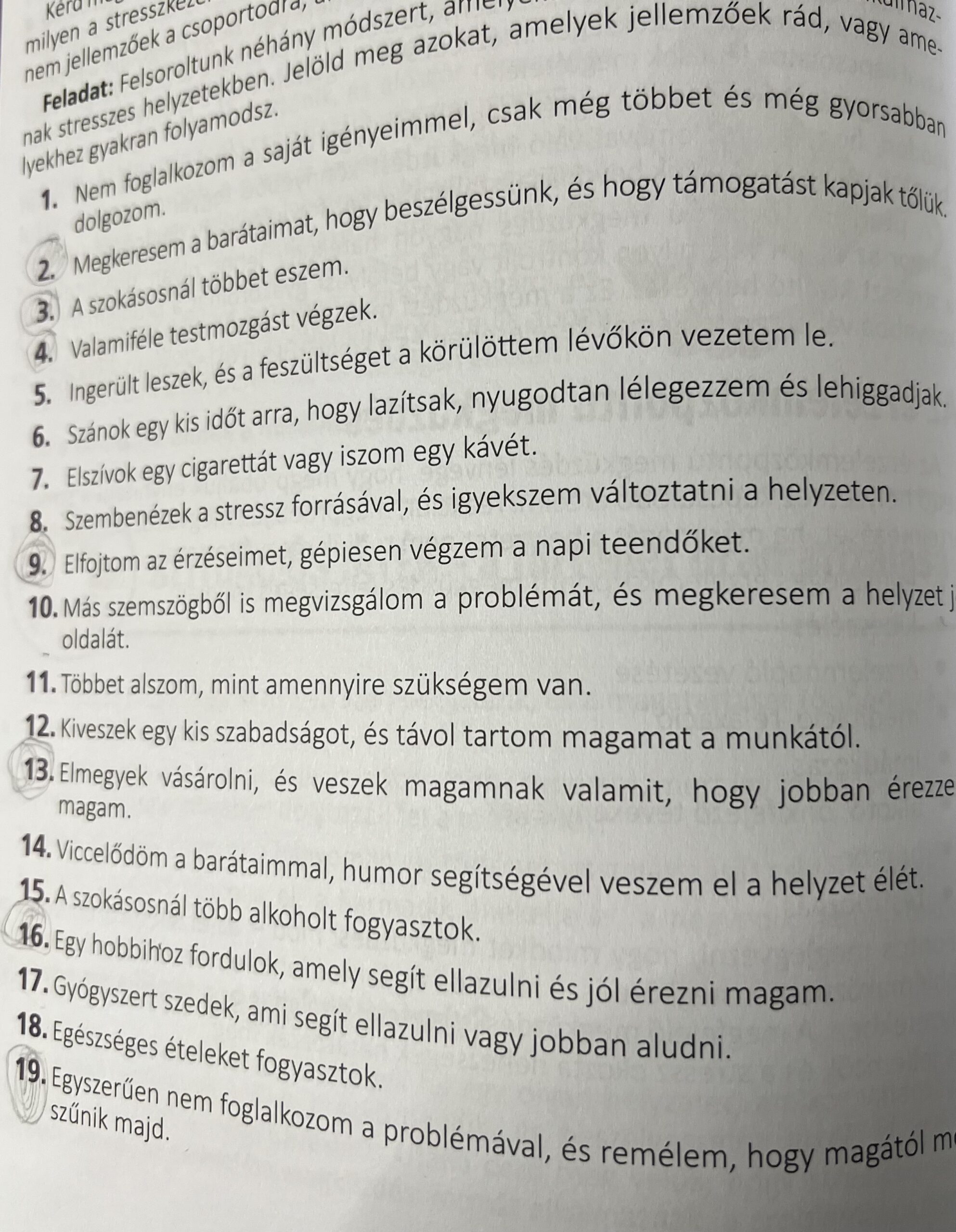 Saját stresszkezelési módszerek felismerése, a tankönyv 174 .oldalán található mondatok felhasználásával. (2.sz. melléklet)