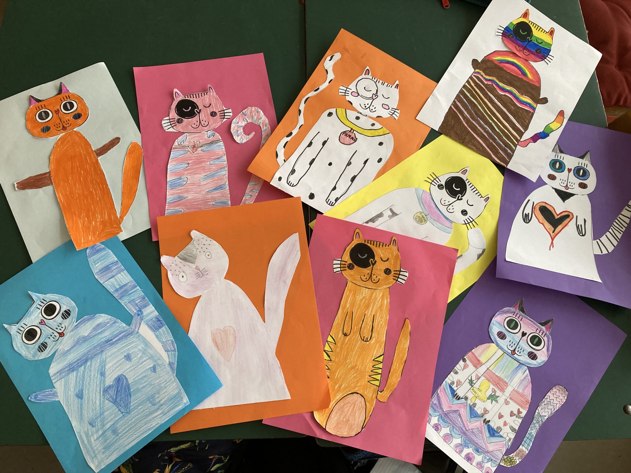 A Macskák napjáról sem feledkeztünk meg, hiszen az állatok mindig kedves téma a gyerekeknek. Megkerestük az interneten a leghíresebb macska mesehősöket, mindenki kiválasztotta a kedvencét, miért ő tetszik neki és a macskák gyógyító dorombolását is meghallgattuk. Miközben doromboltak a cicák, mindenki elkészítette a saját macskáját.