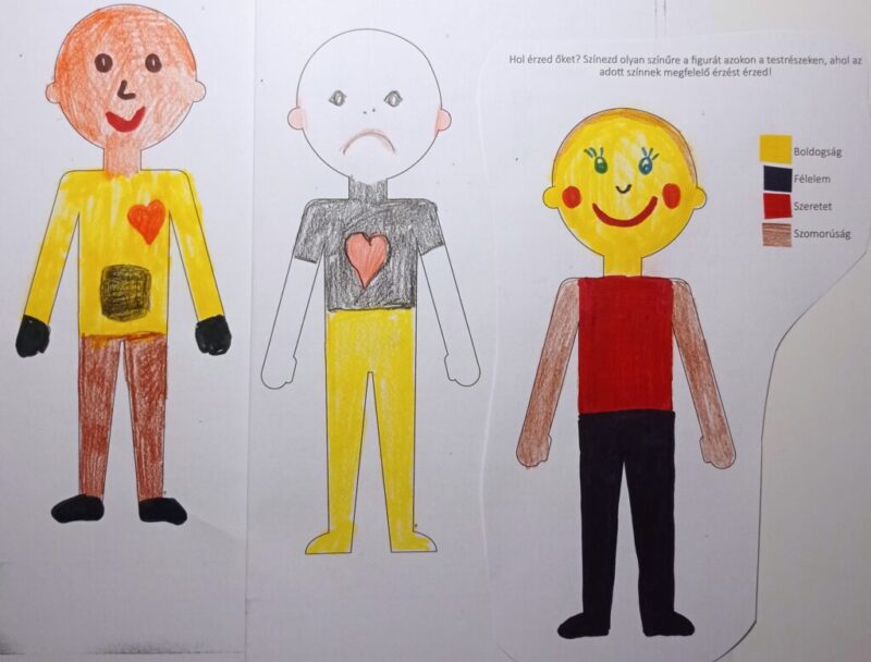 Az órakezdő relaxációt rendszeresen alkalmazzuk más tanórán is, várják, kérik, szeretik a gyerekek. A februári foglalkozáson az Ellazulni jaj de jó! című dalt énekeltük. Beszélgettünk arról, hogy mindenkivel előfordulnak nehéz helyzetek, például amikor valami nem sikerül elsőre, vagy amikor szomorúak, dühösek lesznek. A gyerekek közösen gyűjtöttek ötleteket arra, hogyan lehet ezeket az érzéseket kezelni. Mesék, rajzok és szerepjátékok segítségével kipróbálták a különböző megoldásokat, például a mély levegővételt, a segítségkérést, a pozitív gondolkodást vagy azt, hogy egy kis pihenés után újra próbálkoznak. Kiemeltük, hogy nincs egyetlen „jó” megoldás, mindenki megtalálhatja a számára leginkább működő módszert.