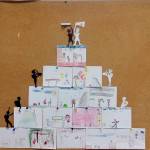 Mi egy piramist alkottunk a rajzokból, amit megmászunk. Mikor felérünk a tetejére, kitűzzük a győzelmi lobogót. Sokféle nehézséggel küzdünk, csak néhányat közülük: „Ne legyek szemüveges.Megtanuljak szépen tornázni. A matekfelmérőm sikerüljön. Meg tudjak mászni egy hegyet. Nagyon jól tudjak zongorázni. Anyukám meg apukám boldog legyen, ezért segítek mindenben. Jó futó legyek. Győzni szeretnék a bokszban.”