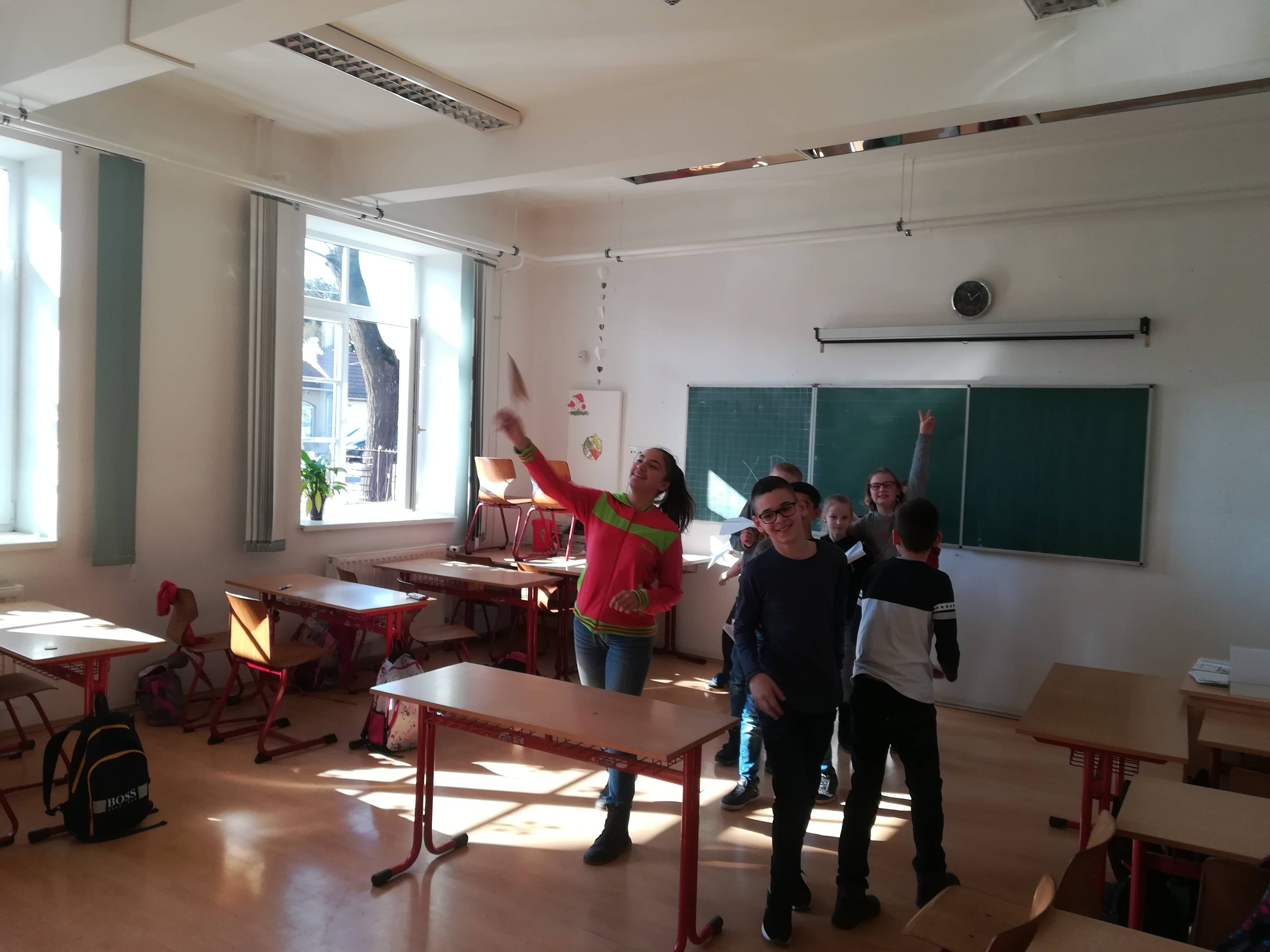 A tanórán a megküzdési stratégiák kerültek előtérbe. Megvitattuk, milyen módszerekkel, technikákkal célszerű leküzdenünk a mindennapi életben elénk gördülő akadályokat. Eztán gyakorlati feladatok következtek. Papírrepülőket kellett célba dobni, ha nem sikerült, tanakodni kellett, hogyan lehetne hatékonyabb a feladatvégzés, majd tablót készítettek a gyerekek: hősökről, akik példaként állhatnak előttünk a problémamegoldásuk és megküzdésük okán.