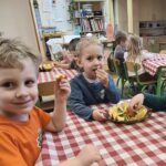Februárban többször voltak betegek a gyerekek. Megbeszéltük, hogy megküzdünk a betegségekkel is. A mindennapi rutinba beépítettük az egészségtudatos szokások erősítését. Amikor kimegyünk a mosdóba, mindig felhívjuk a gyerekek figyelmét az alapos kézmosásra. A gyerekeknek egy kiskanál mézet szoktunk adni, és tízóraira pedig mindig gyümölcsöt, zöldséget esznek. Ebben a hónapban banánturmixot is készítettünk és frissen facsart almalével is kínáltunk őket. Nagyon örültek neki, jóízűen fogyasztották. Ilyenkor tudatosítjuk bennük, hogy ezekben sok vitamin van, egészségesek és jót tesz a szervezetüknek. Örömmel tapasztaltuk a szülők együttműködését is. Többféle, változatos gyümölcsökkel, mézzel támogatják a csoportot. A rendszeres gyümölcsfogyasztás és mézkóstolás által a gyerekek szervezetének védekezőképességét erősítjük és tudatosítjuk bennük az egészségmegőrzés fontoságát.