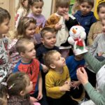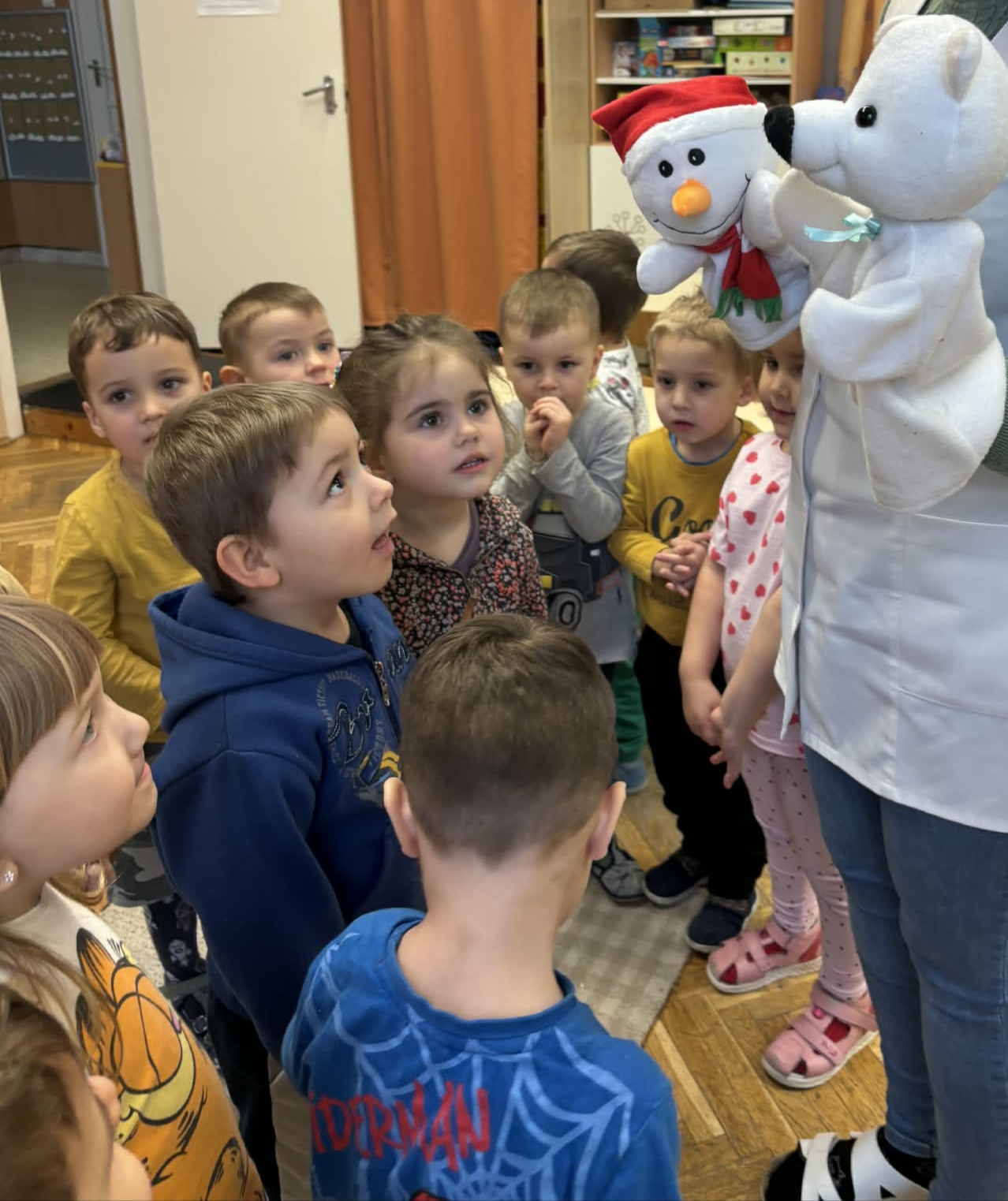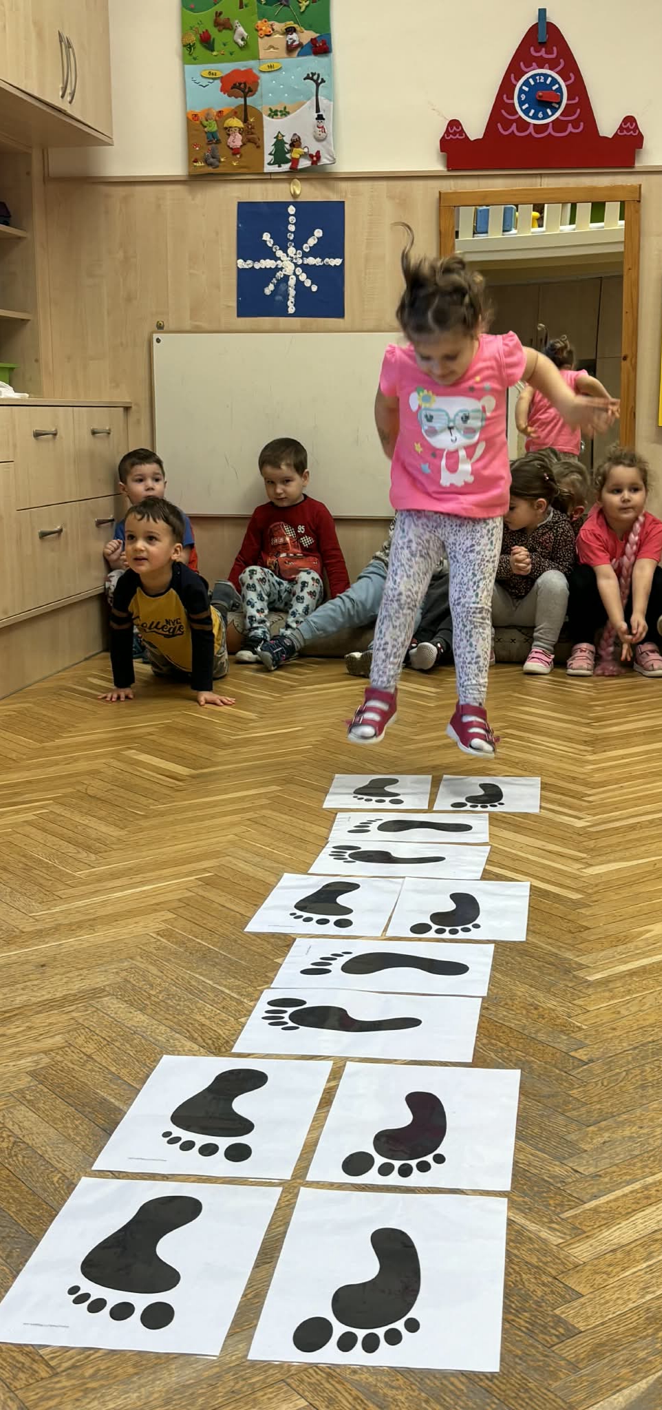 A Boldogságóra program februári témája, a megküzdési stratégiák. A megküzdési stratégiák fejlesztését egy élményalapú játékkal terveztem meg. A dramatikus játék során olyan helyzeteket teremtettem, amely során a gyerekek gyakorolhatták a türelmet, a kitartást és az együttműködést. Egyik nap az öltözőben találtam egy szomorú, csupa víz „hóembert”(kesztyűbáb), akit bevittem a csoportba. A hóember elmesélte a gyerekeknek, hogy azért szomorú, mert jön a tavasz, a meleg idő, ő viszont csak a hideget szereti és a havat. A gyerekekkel közösen gondolkodtunk, hogyan segíthetnénk neki. Megbeszéltük, hogy elvisszük a hóembert az Északi -sarkra, ahol biztos nem fog elolvadni. Mímes játék keretében útra keltünk, repülőre ültünk és magas hóban lépkedtünk. Az Északi-sarkon egy „jegesmedve”(kesztyűbáb) fogadott minket. Elmondta, hogy ő a sarkvidék őrzője, és szívesen beengedi a hóembert, ha a gyerekek három egymást követő napon kiállnak egy-egy próbát. A gyerekek vállalták a kihívást. Az első nap a jegesmedve különleges lábnyomokat mutatott a gyerekeknek. A gyerekek feladata az volt, hogy páros lábbal a megadott irányokat követve haladjanak végig a nyomokon. A második napon a jegesmedve egy ügyességi és kitartást igénylő feladat elé állította a gyerekeket. A gyerekeknek egy hógolyót (vattagolyó) kellett egy szívószál segítségével végigfújni a kijelölt pályán. A harmadik napon a jegesmedve elmesélte a gyerekeknek, hogy az Északi- sarkon él a híres hóember, Olaf, aki nagyon szereti a havat. Ezért minden kisgyerek kapott egy hógolyót a jegesmedvétől, amit Olaf szájába kellett bedobniuk. A gyerekek kiállták mindhárom próbát. A hóember köszönettképpen pedig meghívta a gyerekeket egy „északi –sarki lakomára”. A gyerekek aktívan, lelkesen vettek részt a játékokban. A dramatikus játékot úgy terveztem, hogy nemcsak fejlesztő, hanem közösségépítő hatású is legyen. Mindig bíztatjuk őket a problémák megoldására és nagy hangsúlyt fektetünk az érzelmi intelligencia fejlesztésére is.