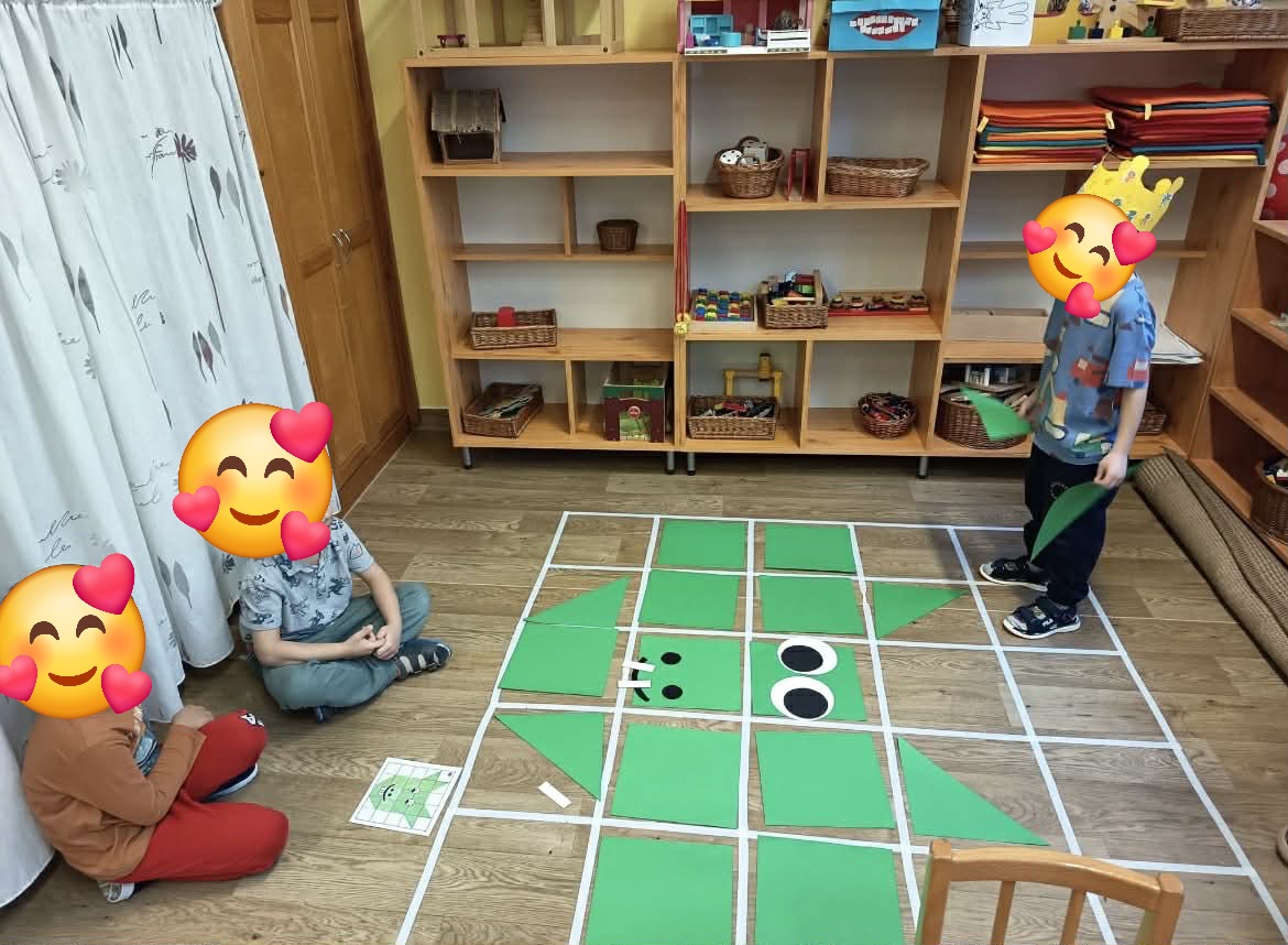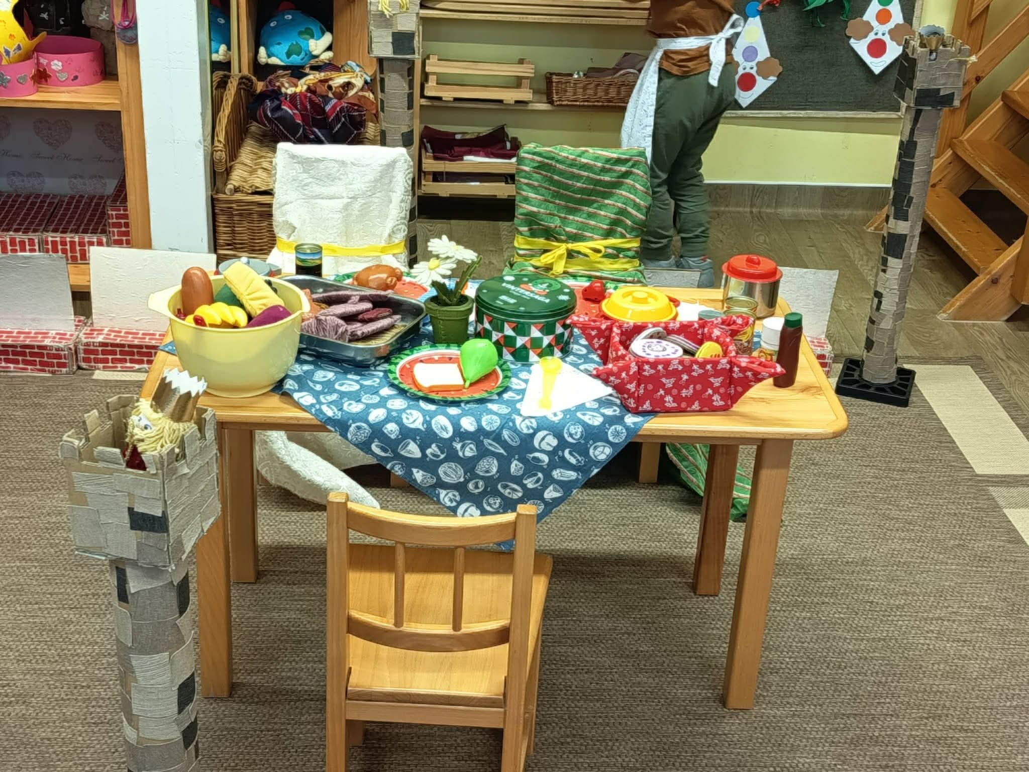 A mesében szereplő királylányként énekléssel hívtam a gyerekeket a közös próbák megtételére. Nagy örömmel csatlakoztak a játékba a királylányok és királyfik. A királylánytól segítő varázspecsétet is kaptak a kezükre. a segítők.