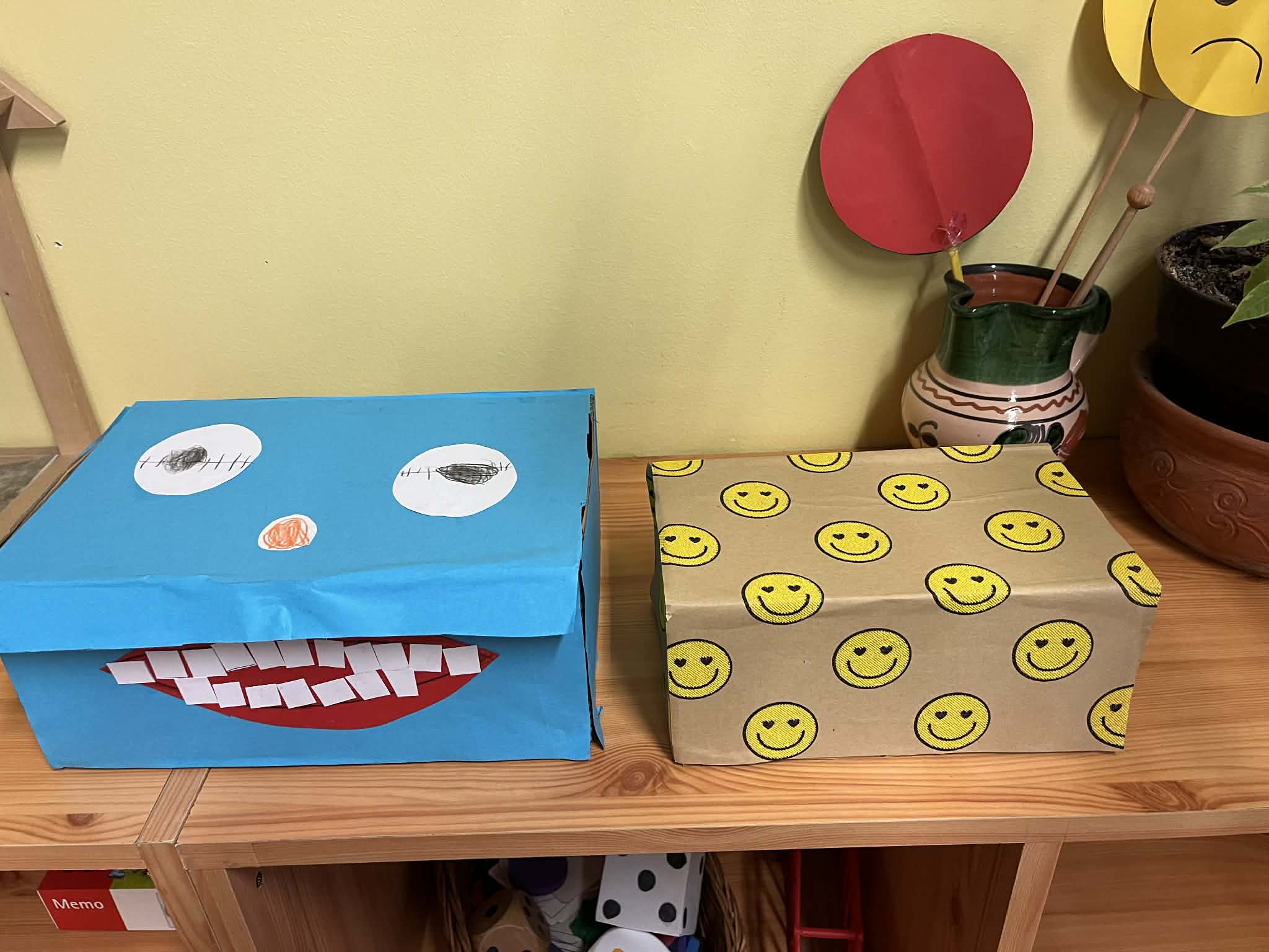 A gyerekekkel közösen gondevő és nyugi dobozt alkottunk. A gondevő dobozba mindenki belerajzolhatta, amitől félt már. A nyugi dobozból pedig, ha szorongott valaki, kivehetett egy olyan tárgyat, ami megnyugtatta őt.