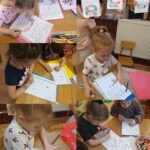 A gyerekek nagy buzgalommal színezték ki a magabiztosság sálját,amelynél elmondtam a rövid kis történetet,mely során kiemeltük a bátorság,magabiztosság és kitartás fogalmakat. Beszéltünk arról is,hogy sok türelemmel,kitartással,önbizalommal megvalósulhat az,amit szeretnénk, sok akadály leküzdhető. A magabiztosság sáljának színezésekor ismertettem a dobókocka használatával kapcsolatos tudnivalókat,ami a színezés szabályait határozta meg. Nagycsoportosaink nagy
