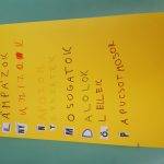 Ebben a hónapban sokat beszélgettünk arról, hogy kinek mi okoz feszültséget, s ezt hogyan lehet oldani. Tanultunk feszültségoldó technikákat, melyeket az osztályban előforduló konfliktus során ügyesen alkalmaztak is a gyerekek. Néztünk filmet a düh kezeléséről, a félreértésekről, s az elfogadásról is. A foglalkozás végén Bagdi Bella dalával „lazultak” diákjaim. Ki