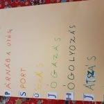 a szőnyegen, ki a pad tetején érezte jól magát a relaxáció közben.A választható feladatok közül kettőt is megcsináltunk. Felolvastam a Kecskekatonaság című magyar népmesét. Készítettünk technika órán kecskeálarcot, s el is játszottuk a mesét. Nagyon kreatívak voltak a „katonai kiképzés ” során. A szókészlet gyűjtését 3 csoportban végezték. Egészséges verseny alakult ki a csapatok között. A szavak megbeszélésekor néhámy gyermekről olyan információt tudtam meg, amit eddig nem is gondoltam volna. Új oldaláról ismerhettem meg néhányukat, s ez jó érzés volt számomra.