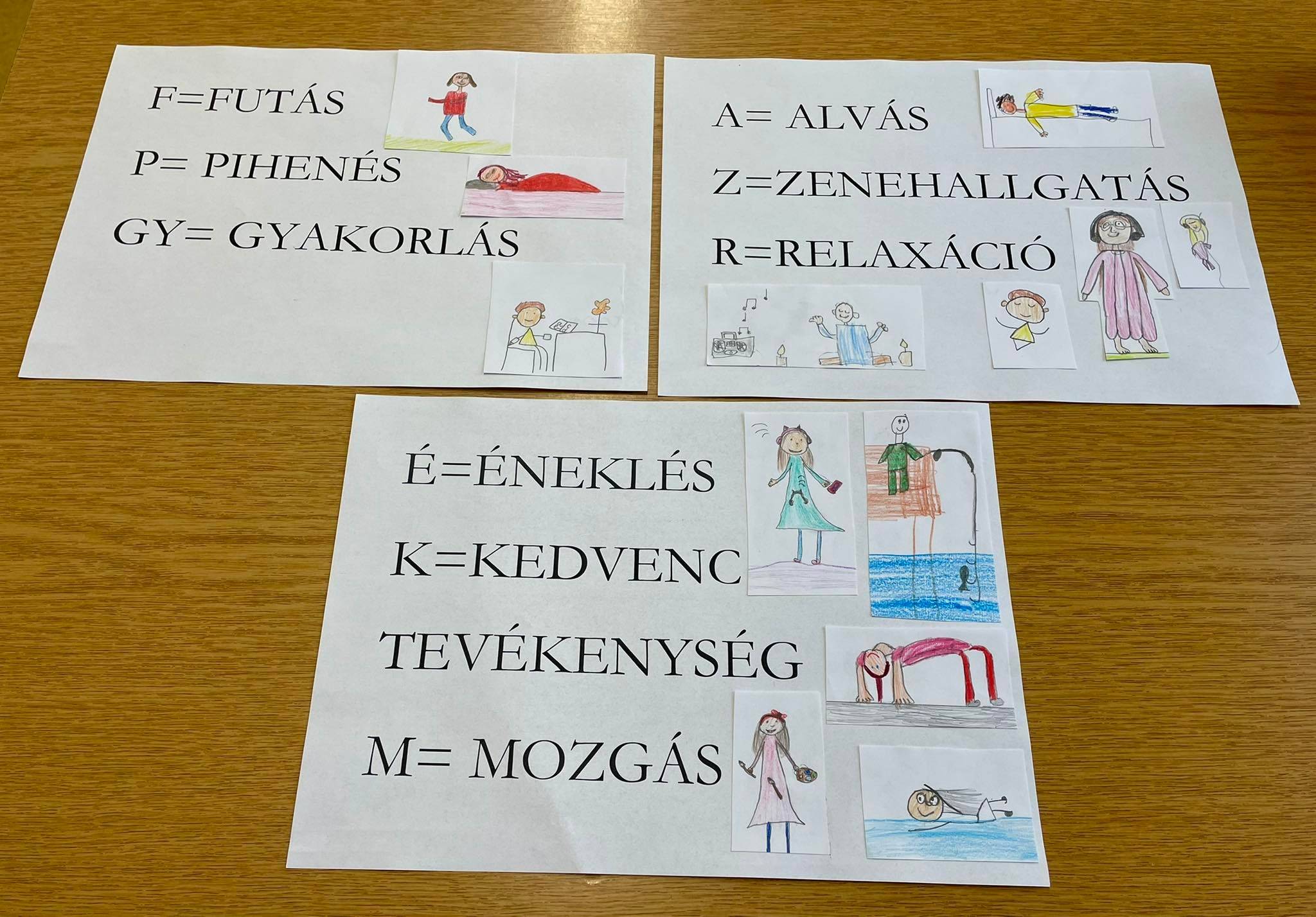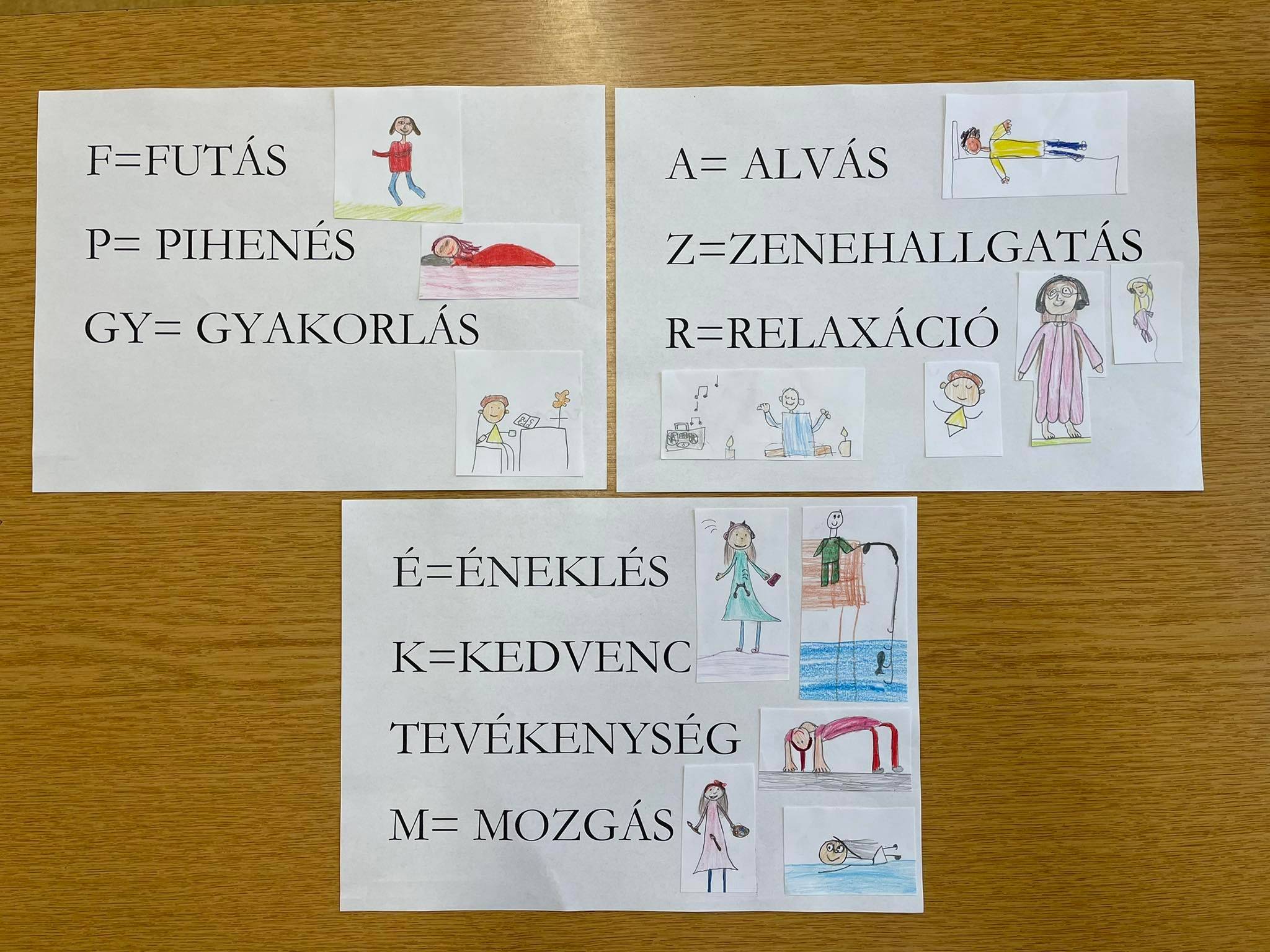 A gyerekekkel a téma feldolgozása során több olyan dolgot összegyűjtöttünk, amivel ők maguk tudnak segíteni, ha izgulnak. Ezt le is rajzolták és így készült el a képes szókészletünk.