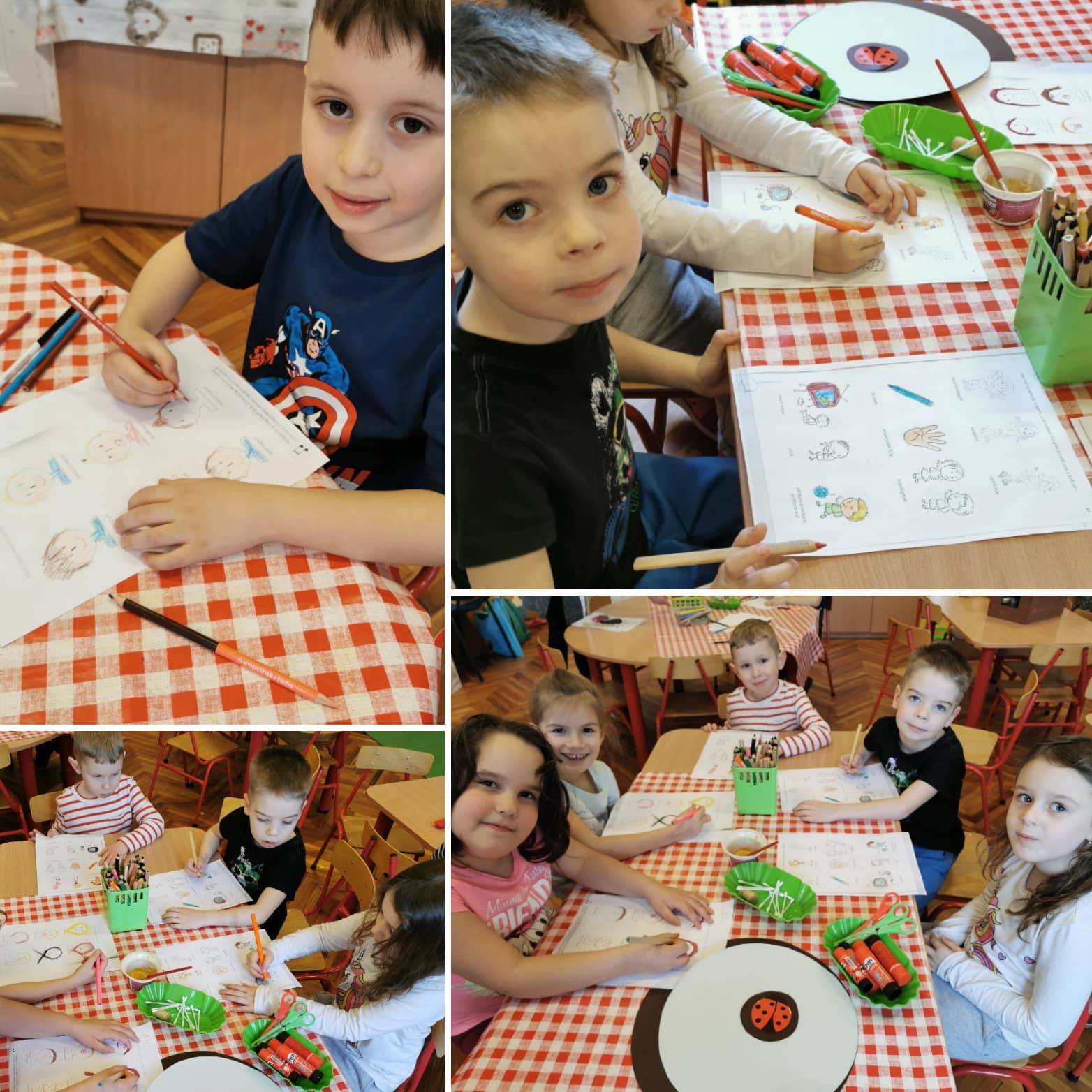 A választható feladatok közül elkészítettük a Katicák Pajzsát, ami megvéd minket bútól, bajtól. A kis képekből közösen választottunk, olyanokat amiket közösen alkalmazhatunk, amik segítenek átvészelni a szomorú pillanatokat, nehéz helyzeteket, vagy amik jobb kedvre derítenek minket. Mindenki kivette a részét, volt aki vágott, ragasztott, volt aki festett vagy színezett. Méltó helyre került a Boldogságvárunk közelébe.