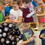 A következő tevékenységünk a „mosolygó gesztenyék keresése” volt. A csoportszobában elrejtettünk vidám arcú gesztenyéket, és a gyerekek izgatottan keresték őket. Amikor mindenki megtalálta a saját „mosolygó gesztenyéjét”, elmondtuk, miért pont azt választottuk, mitől lett az „boldog gesztenye”. Ezután mindenki kiválasztott egy társát, akinek ajándékba adta a gesztenyéjét, ezzel is gyakorolva az önzetlenséget, az odafigyelést és az örömszerzést másoknak.