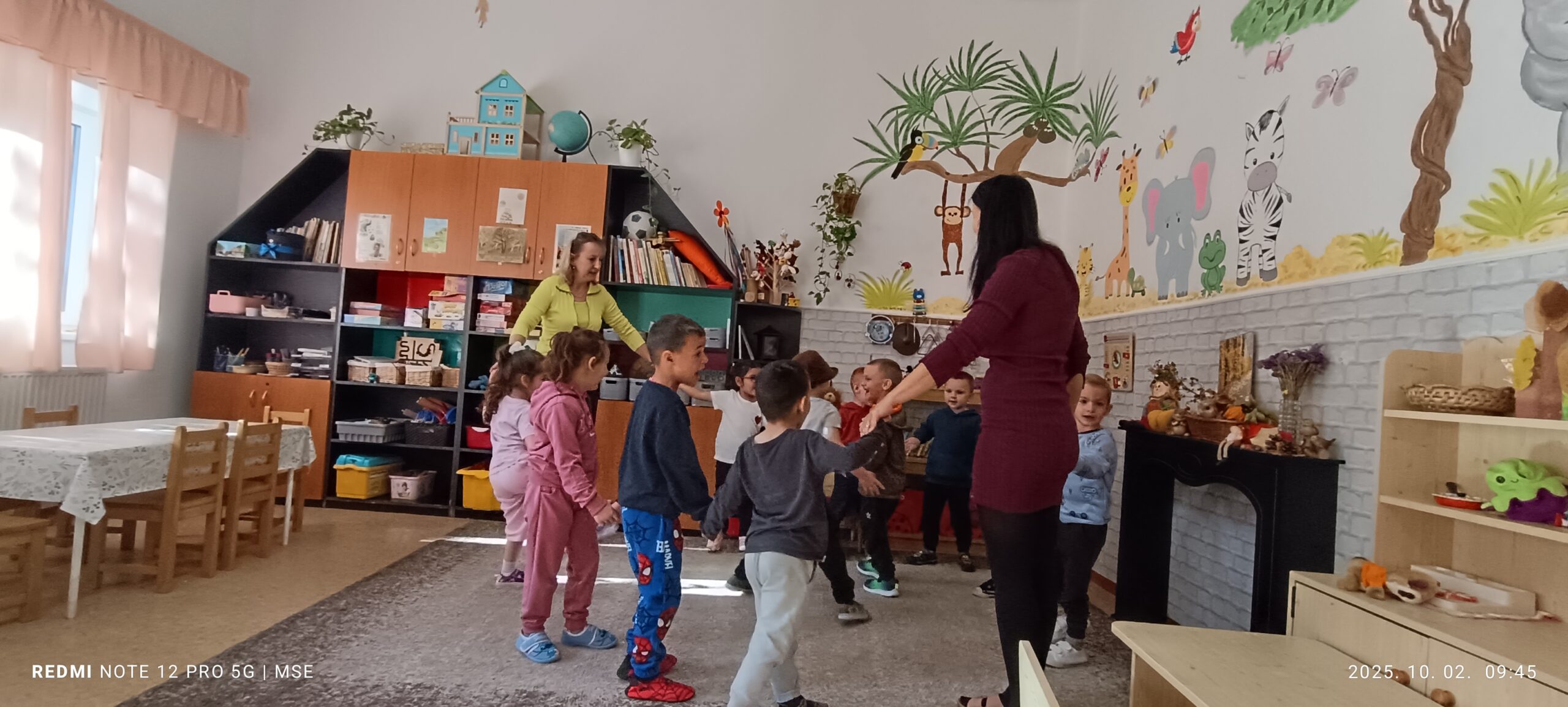Dal: közösen elénekeljük mozgással kisérve: Ha jó a kedved üsd a tenyered kezdetű dalt.