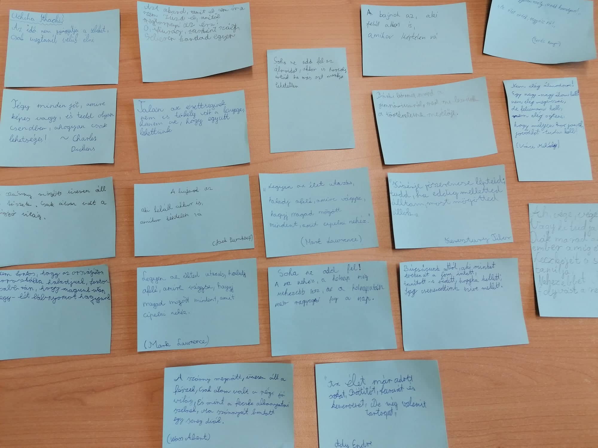 Személyes üzeneteket illetve szívhez szóló idézeteket írtunk a ballagók számára, belamináltuk a kis kártyákat és a ballagók tarisznyájába rejtettük.