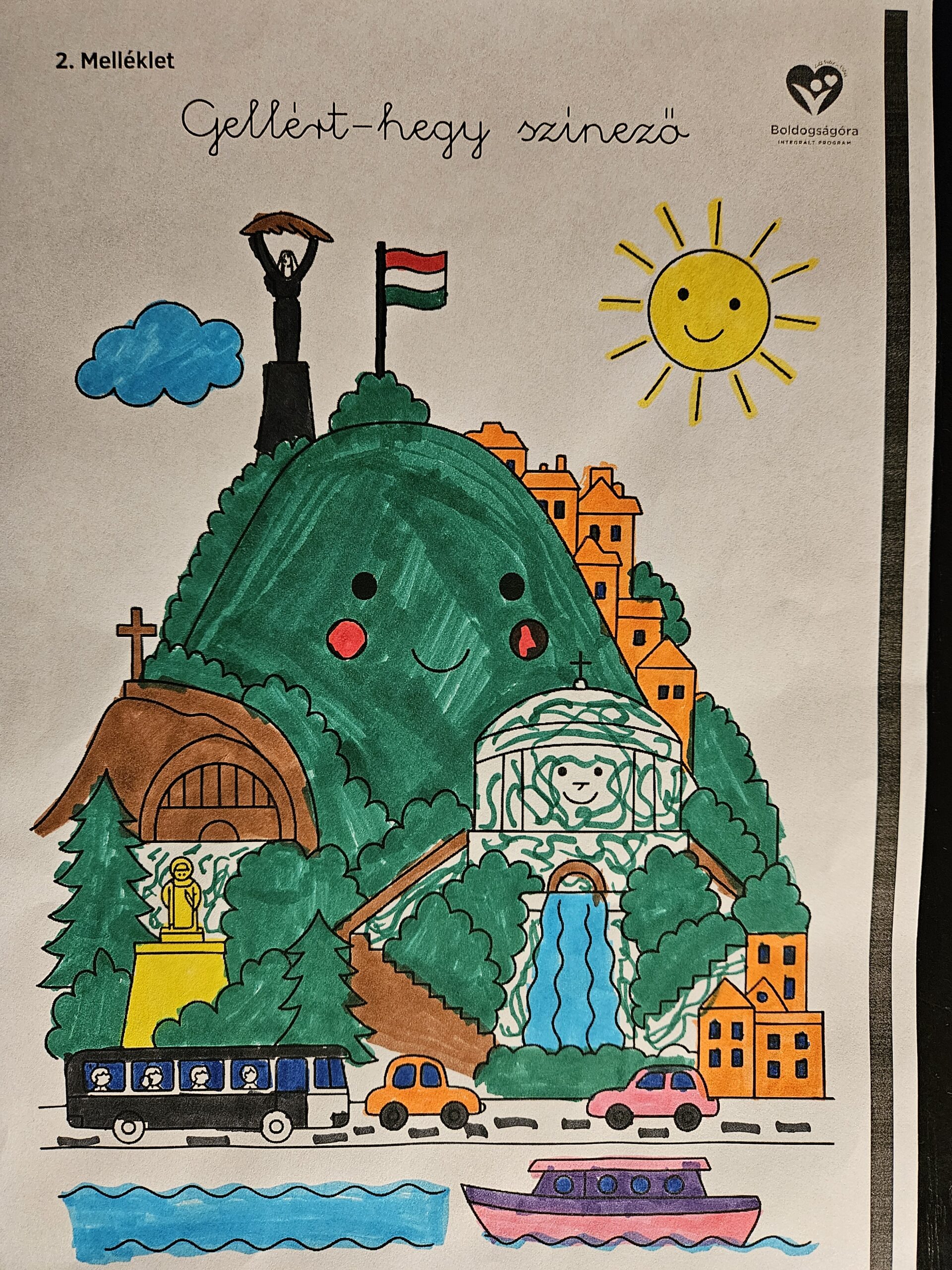Meghallgattuk a „A hála virága az Erősségek kertjében”, majd a Hála erősségdalát. Beszélgettünk a háláról. Végül a Megsértődött a Gellért-hegy mese következett és a témafeldolgozó kérdések.
