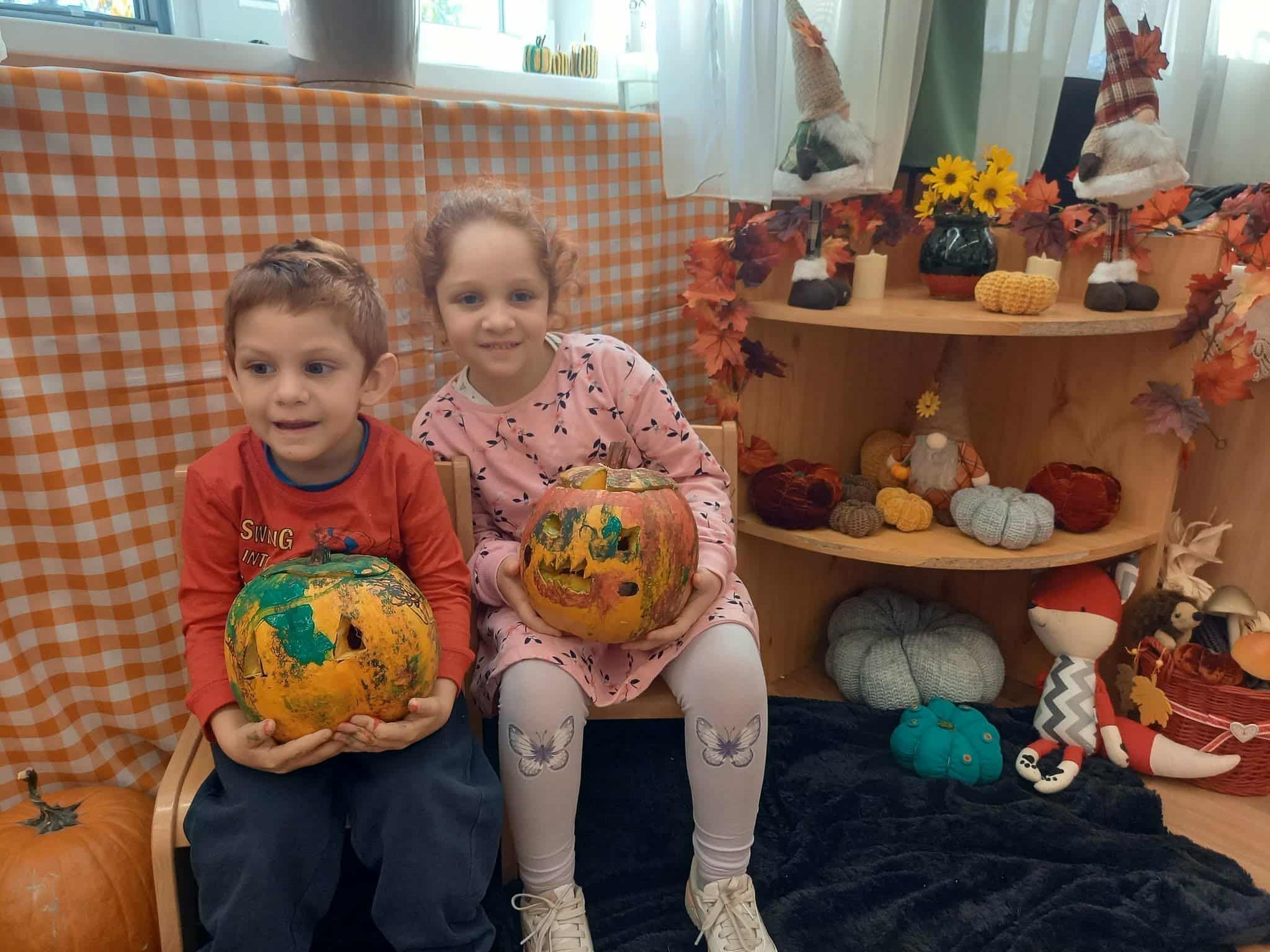 A hónap során a családokat is bevontuk a témába: közösen tökfaragó délutánt szerveztünk, melyhez jótékonysági cél is társult. A szülők és gyerekek együtt készítették el az alkotásokat, a megvásárolt tökök árával pedig beteg gyerekek gyógyulását segítettük. Ez a közös élmény nemcsak az optimizmust, hanem az összetartozást és az empátiát is erősítette a közösségünkben.