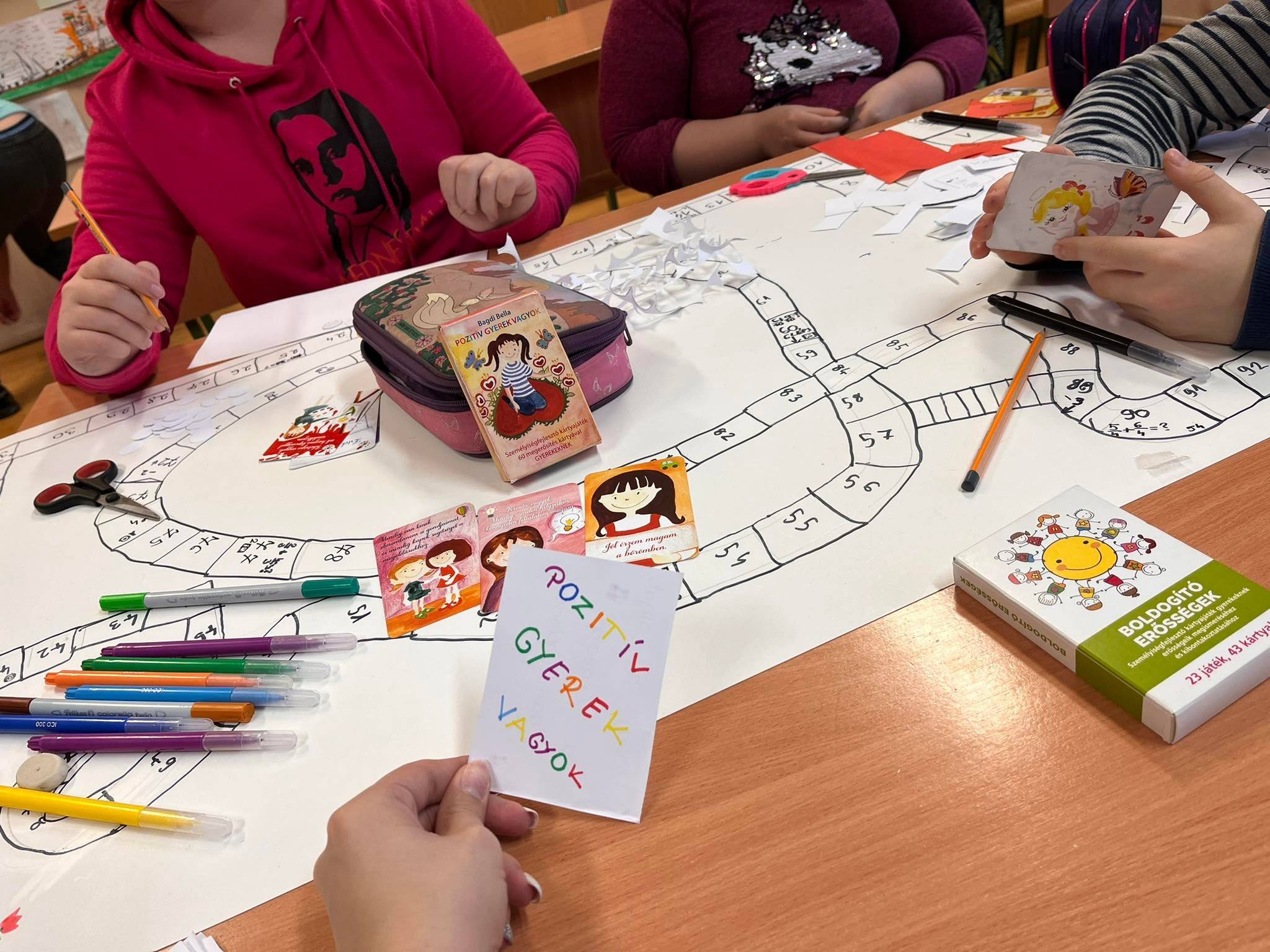 Januárban a célok kitűzéséé a főszerep, így volt ez iskolánkban is. Nagyon sokat beszélgettünk a gyerekekkel arról, hogy mennyire fontos az, hogy kitűzzek magam elé egy célt és meg is valósítsam. Bizony sokszor nem könnyű a megvalósításhoz vezető út. Ötödikeseimmel célként tűztük ki, hogy január végére olyan komplex társasjátékot készítünk, amit magyar nyelv és irodalom, matematika, természettudomány tárgyakhoz fel tudnak használni. Természetesen pozitív gyerek vagyok kártyákkal egészítettük ki a játékot. A társas készítése nagyon jó hangulatban telt, hallgattuk a hónap dalát, kártyajátékot játszottunk. Az első osztályosaimmal kicsit nehezebb dolgom volt. Kezdetben nehezen értették meg, hogy mit is jelent az, hogy célt kitűzni. Először kicsiben próbálkoztunk, „napos célokat” tűztünk ki: az udvaron összeszedem a szemetet, olvasok ma egy oldalt az olvasókönyvben, matekból szorgalmit készítek, anyának segítek elmosogatni, stb… Utána már nagyobb célokat tűztünk ki, pl: januárban rendet teszünk a tanteremben, elkezdjük elkészíteni a tavaszi dekorációt. Januárban megemlékeztünk a magyar kultúra napjáról. Az elsősökkel kitűztük célunkat, hogy verset, mondókát tanulunk és rajzolunk, színezünk is a nagy napra. Nem is kérdés, meg is valósítottuk, mind a 11 gyerkőc szerepelt és rajzolt is. Nagyon fontosnak tartom, hogy minden héten, hónapban tűzzünk ki magunk elé célokat, igyekszem a gyerekeket is ebben a szemléletmódban nevelni, formálni. Mint mindig, ebben a hónapban is önfeledten alkottunk, beszélgettünk, játszottunk a gyerekekkel.