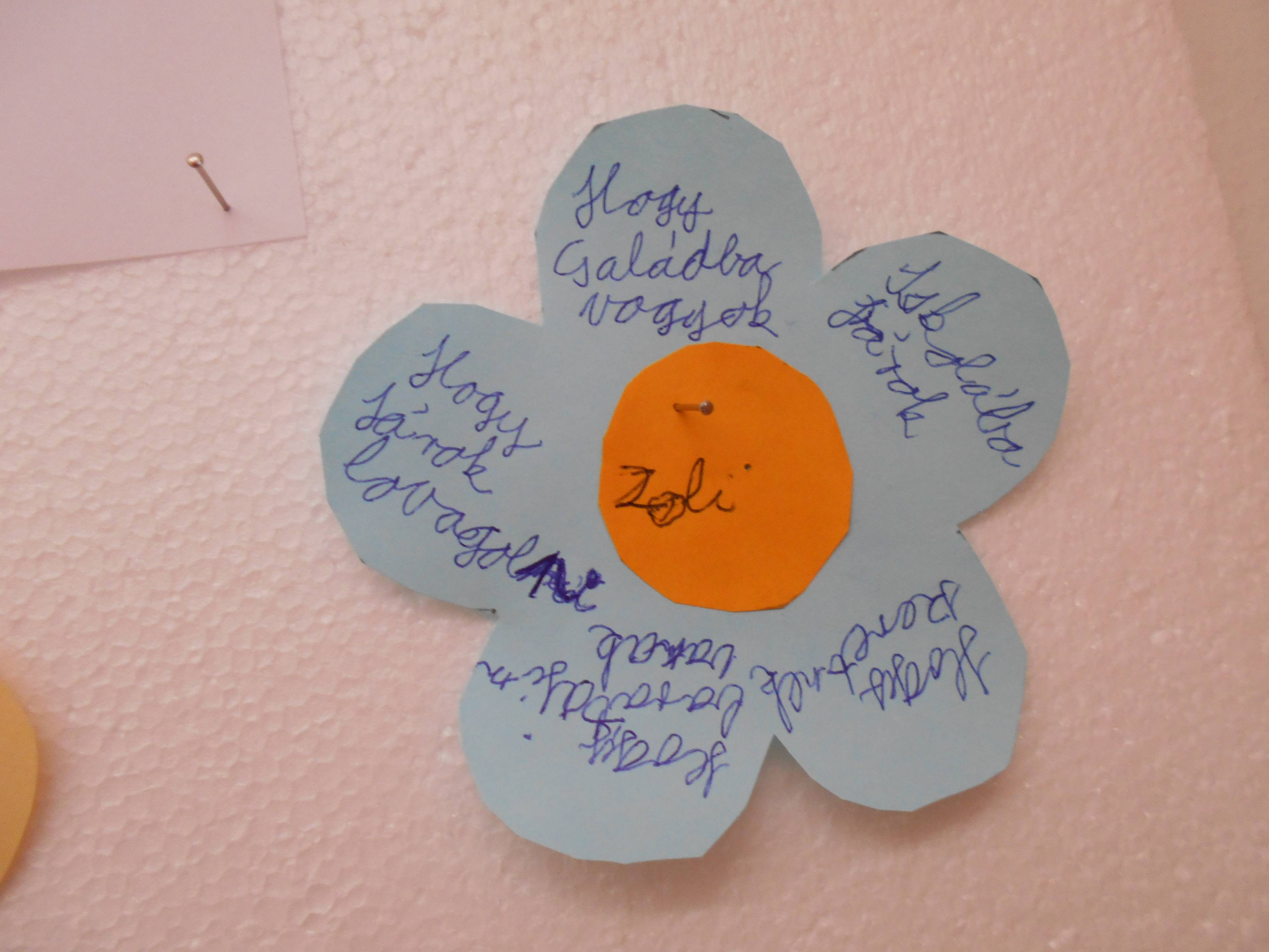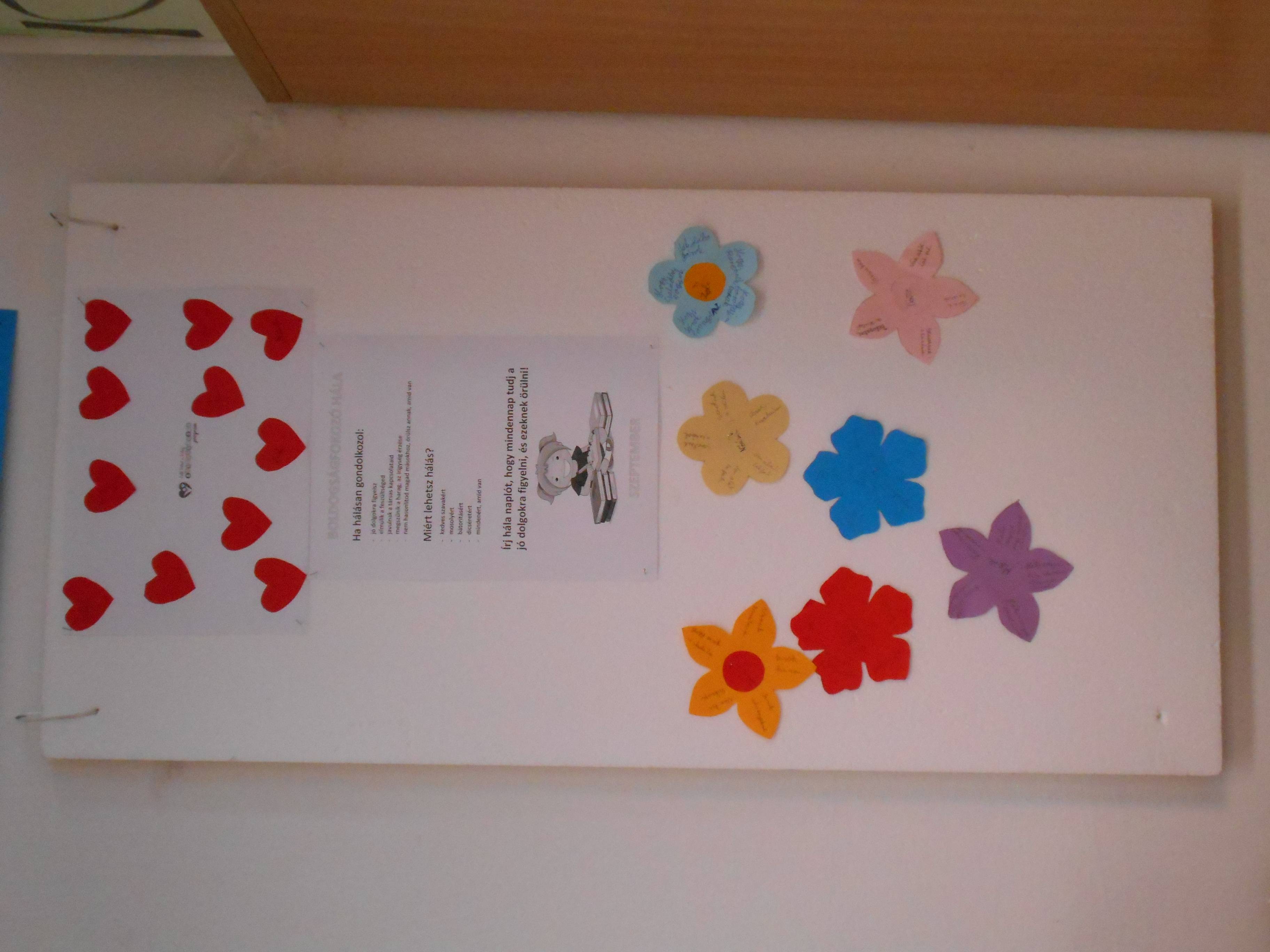 8. osztályos kis csapatom elmélyülten dolgozott. Mindenki megfogalmazta, hogy az életében miért lehet hálás. Hála kertünkben a virágok szirmai megteltek hálával.