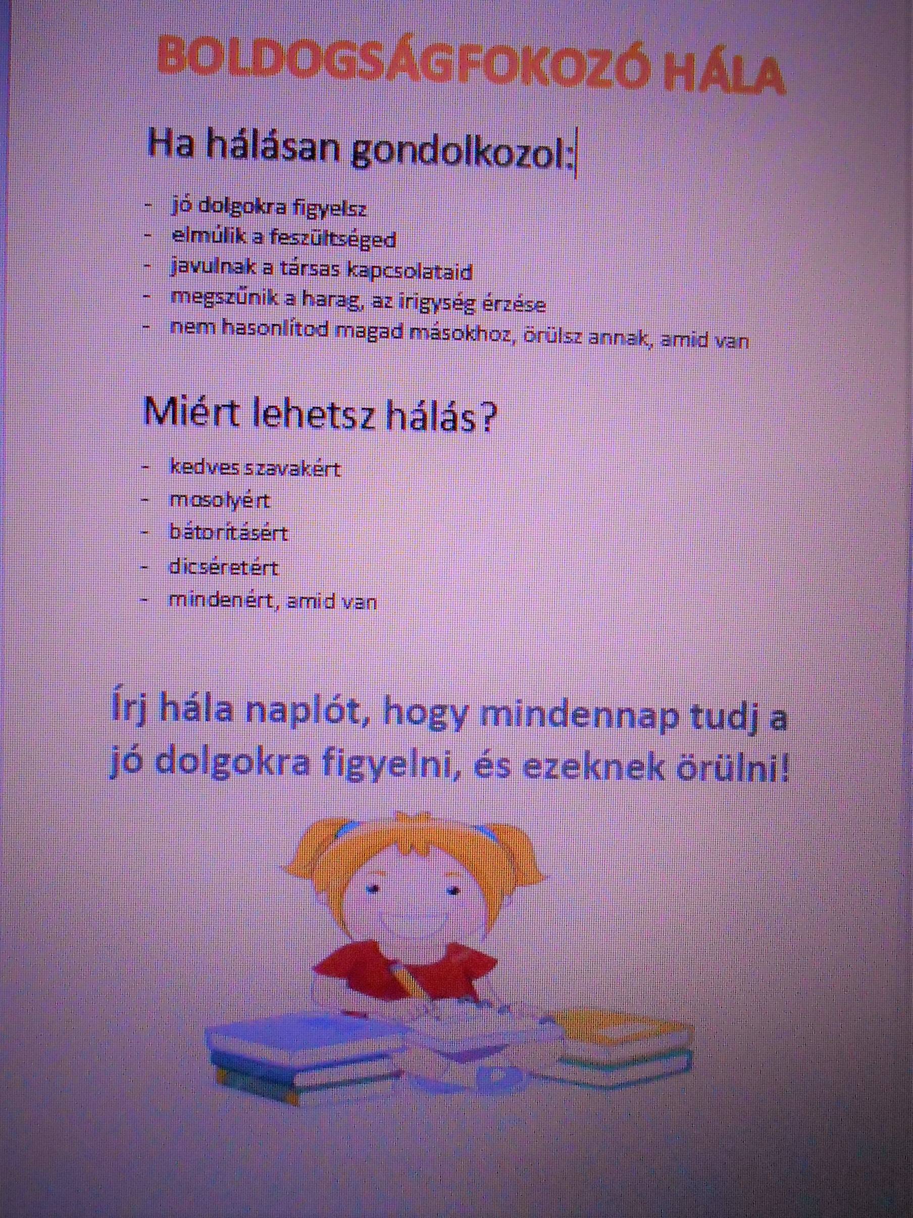 - Téma: A boldogságfokozó hála