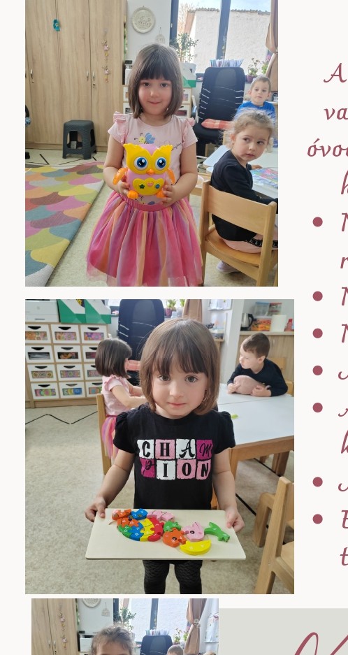 A gyerekek elhozták az óvodába a kedvenc játékukat és elmondták, hogy miért arra esett a választásuk. „Nekem azért, mert a beszélő bagoly tanít románul. Nekem ez a kedvenc fa kirakóm. Nekem ez a kedvenc alvókám. Motrozni fogok, ha nagy leszek! Anyuval készítettük ezt a papír kukkert! Minden nap kirakom ezt a kirakóst! Ebből a kis könyvből szokott Bence a