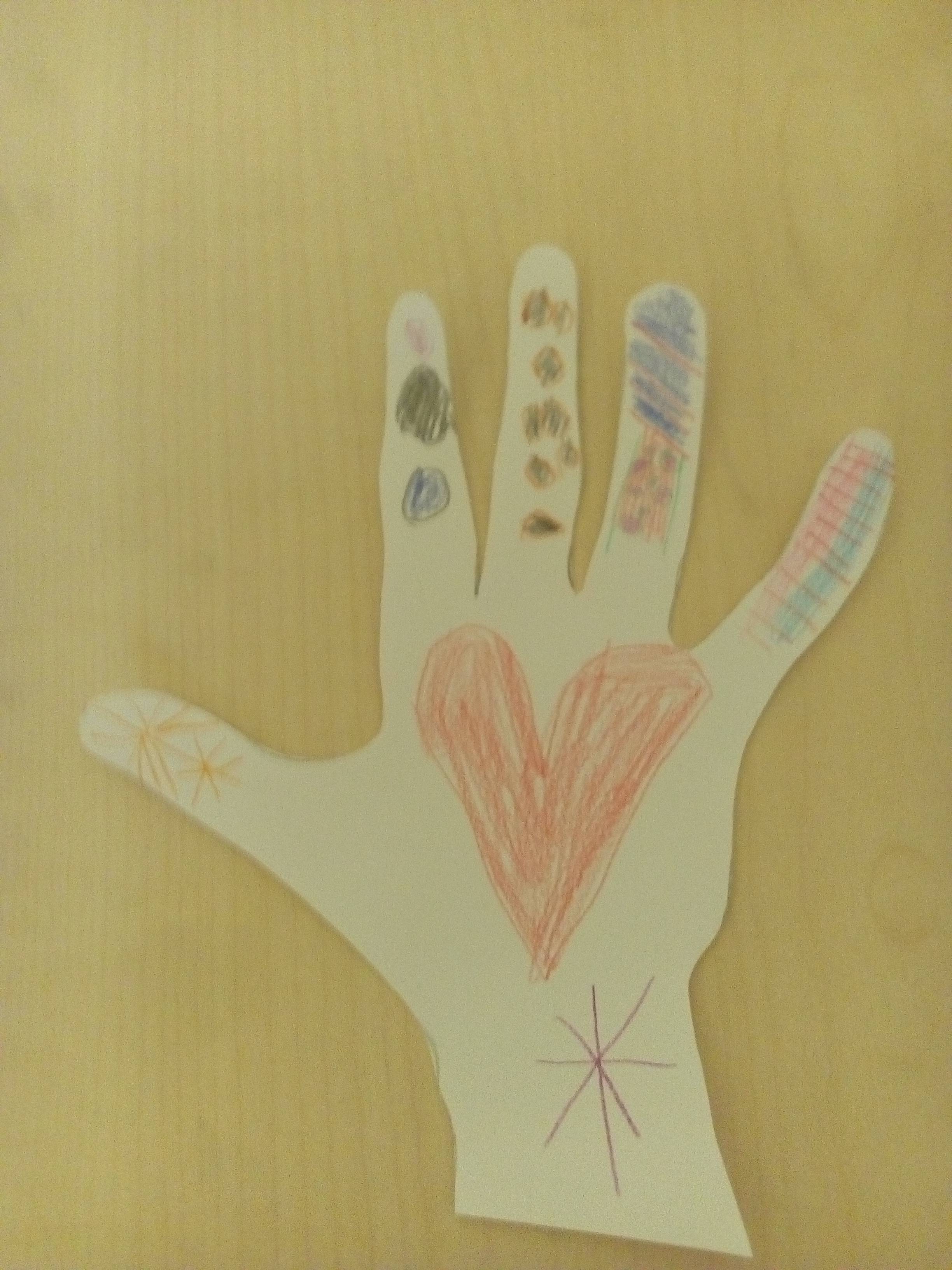 A hála nehéz fogalom a gyerekek számára. Példákkal azonban szépen beépíthető gondolkodásukban. Mivel örökös zöld óvoda vagyunk, így összekapcsoltam a természetvédelemmel és mindennapi életükkel a példákat, amit életkoruknak megfelelően közvetítettem. Így hálásak voltunk a tiszta vízért, a hortobágyi jó levegőért, a doktorainknak gyógyulásunkért, szüleinknek a mesékért, a szeretetükért..stb. Hálakezeinket hurkapálcára rögzítettük és ezt adtuk annak, akinek hálásak voltunk valamiért. A témakörhöz kapcsolódó feladatként közösen alkottunk mesét a segítség viszonzásáról. Motivációként egér és lovacska síkbábot használtam, akik egy istállóban élnek. Közösen fűztük a mesét, mindenki tett hozzá egy – egy ötletet. Az óvónői segítség dominált, így sikeresen hozzákapcsoltuk a ,,jó tett helyében jót várj!” szólást.