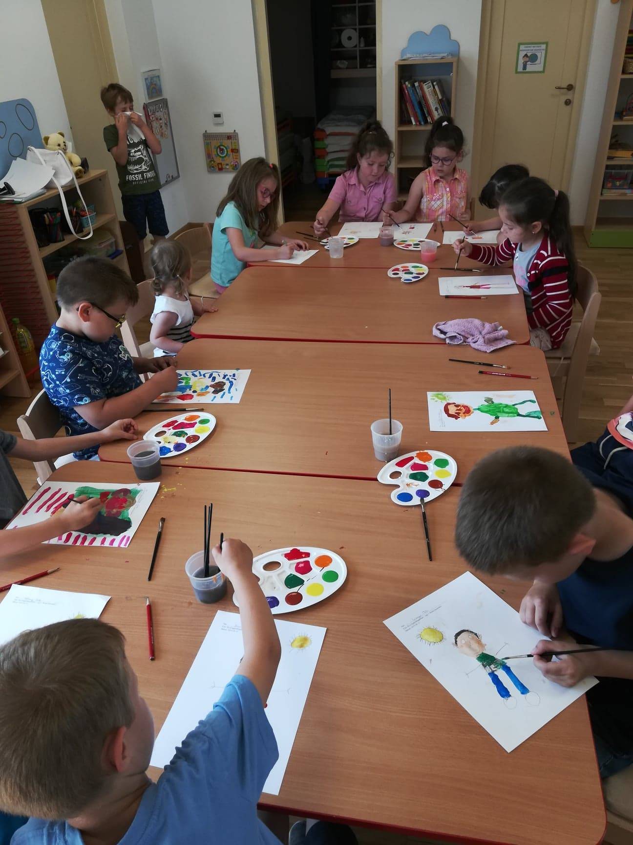 A mesés utazást követően, a gyermekeknek le kellett festeniük saját magukat. A feladat címe: „Én boldogan”. Az elkészült alkotások kiállításra kerültek a csoport mágneses tábláján, amit az utolsó tanítási hét végéig a gyermekek megcsodálhattak.